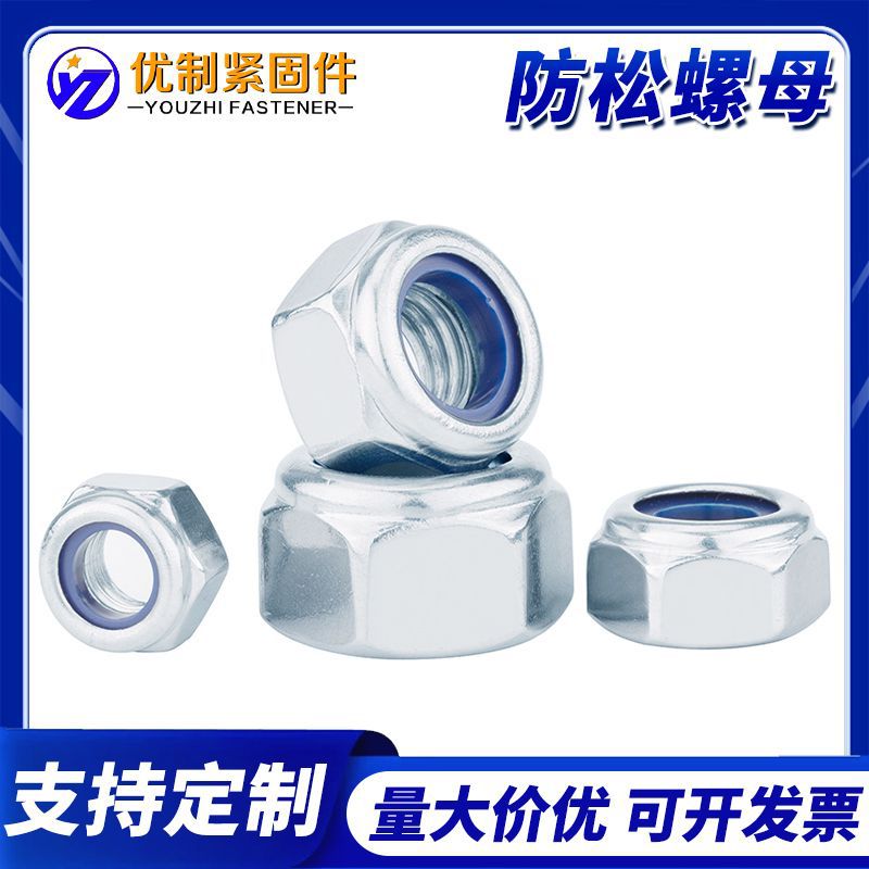 镀锌尼龙螺母外六角旋钮螺母防松螺母尼龙锁紧连接螺母外六角螺母