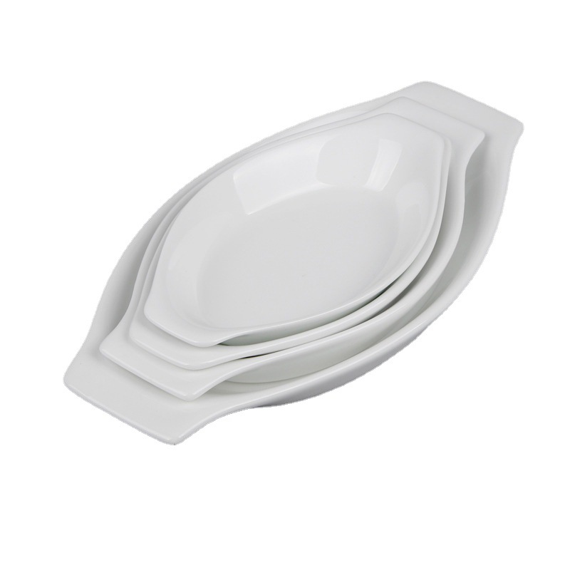 批发酒店瓷 镁质晶钻瓷 菜盘 双耳烤盘 平底香蕉船形盘子 焗饭盘