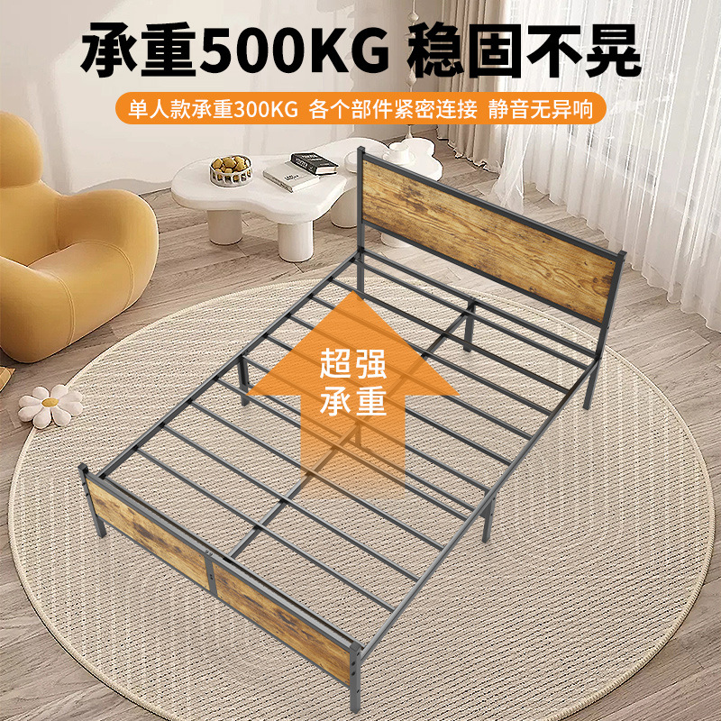 跨境单双人铁艺床加厚加粗多规格铁床出租屋主卧板式床宿舍铁架床