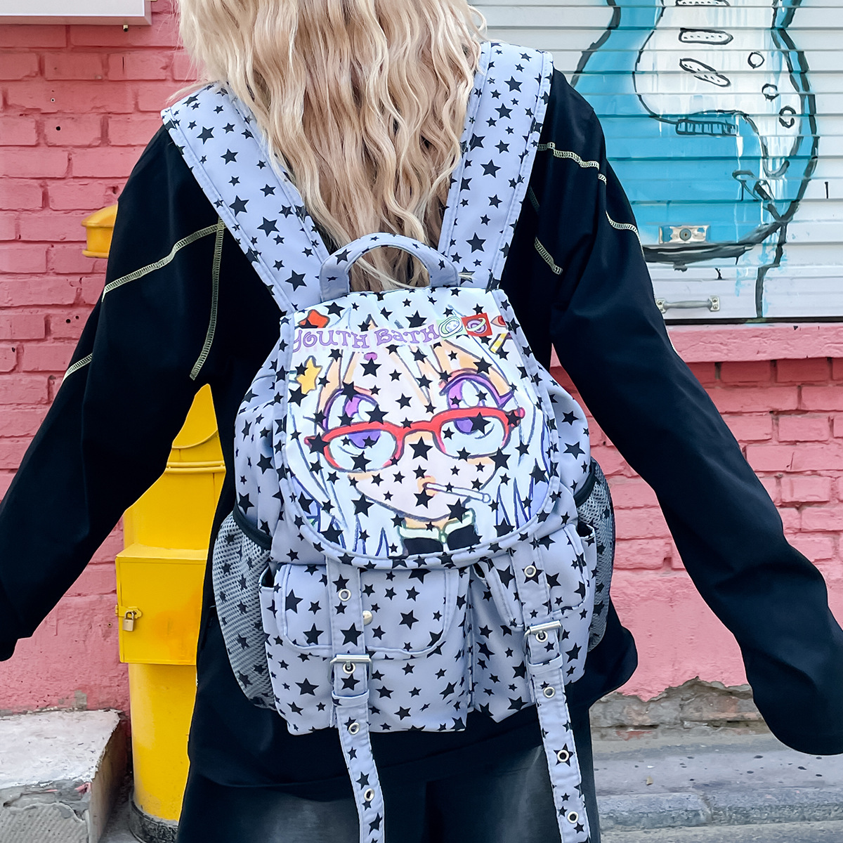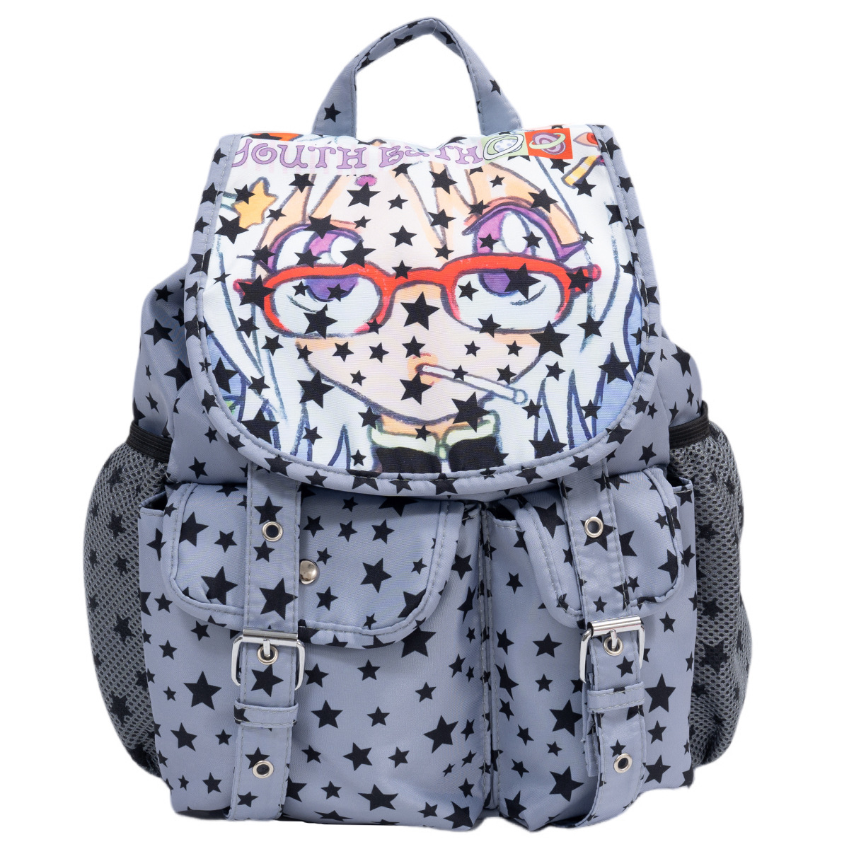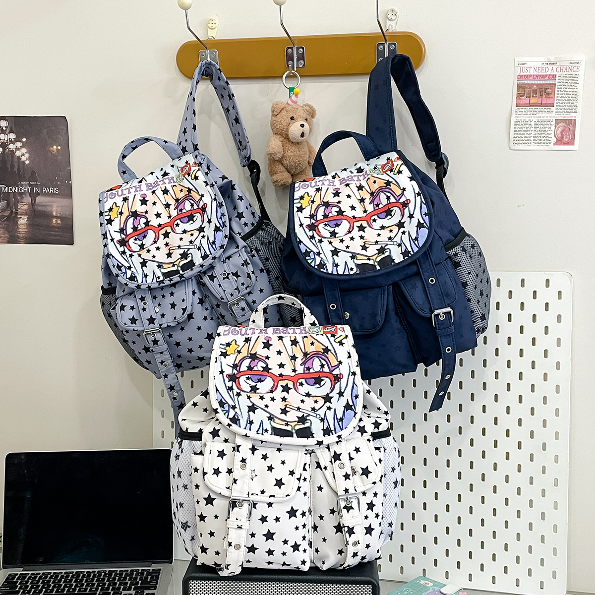 日系ins学生书包时尚抽绳潮流双肩包大容量星星印花可爱通勤背包