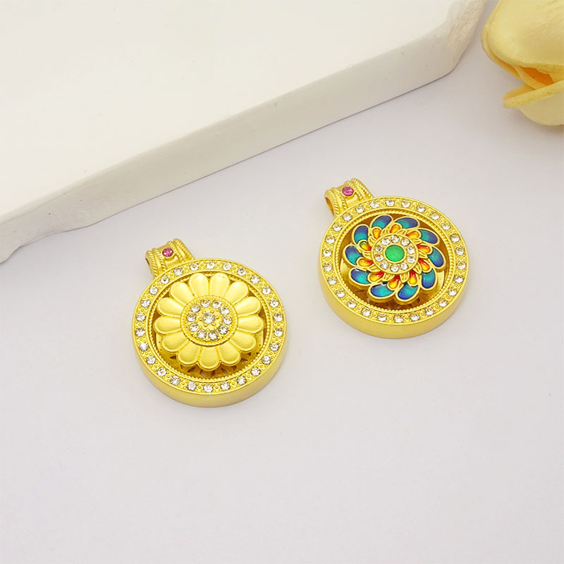金店同款可旋转太阳花吊坠宫廷风国潮镶钻珐琅彩八宝罗盘财神项链