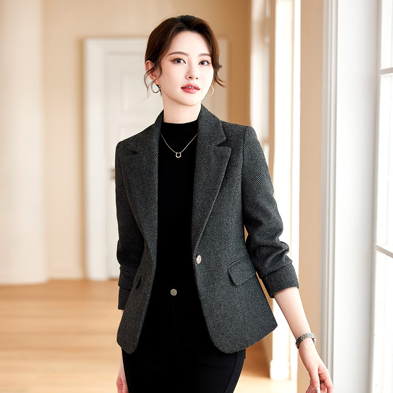 休闲西装外套女春秋2025新款小个子高级感短款毛呢小西服上衣
