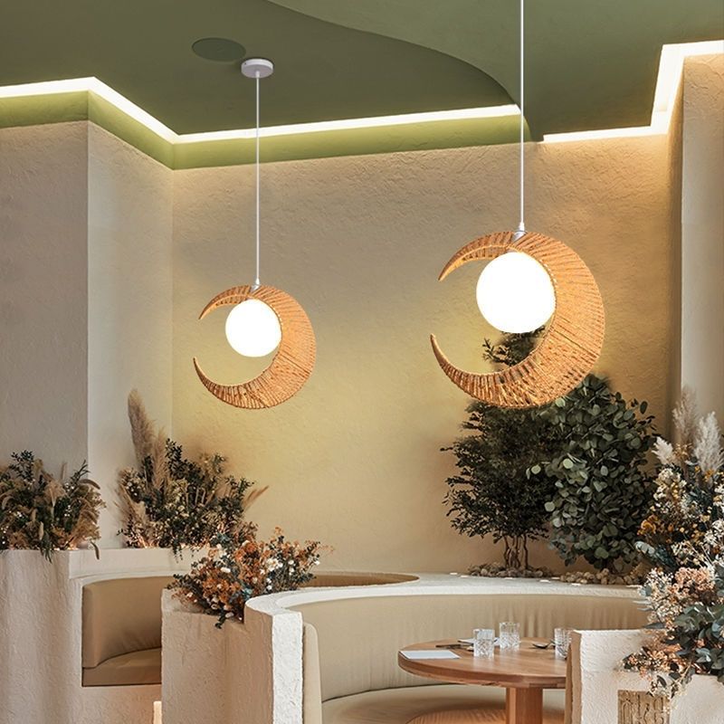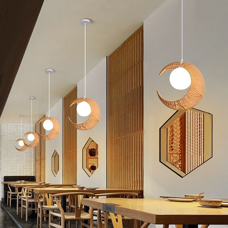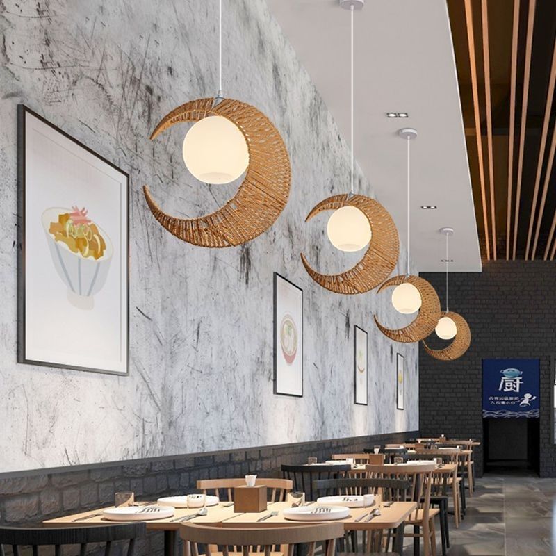 创意日式竹编藤编艺术餐厅月亮藤艺复古餐桌民宿吧台阳台吊灯灯具