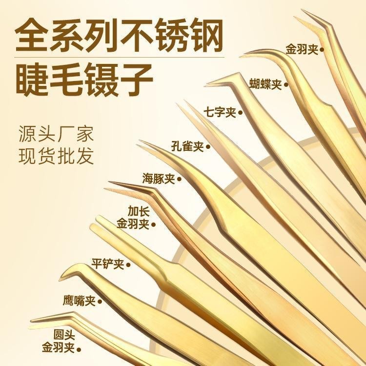 直销假睫毛镊子 美睫师自嫁接睫毛开花分毛金羽夹不锈钢工厂现货