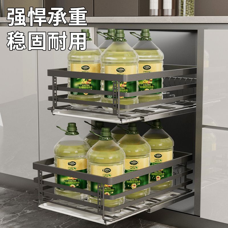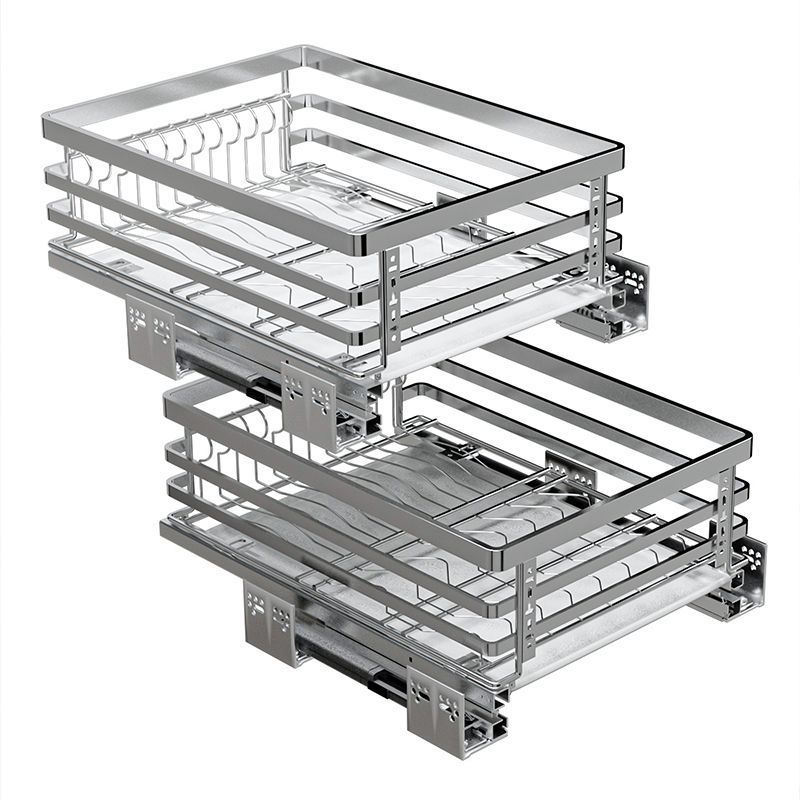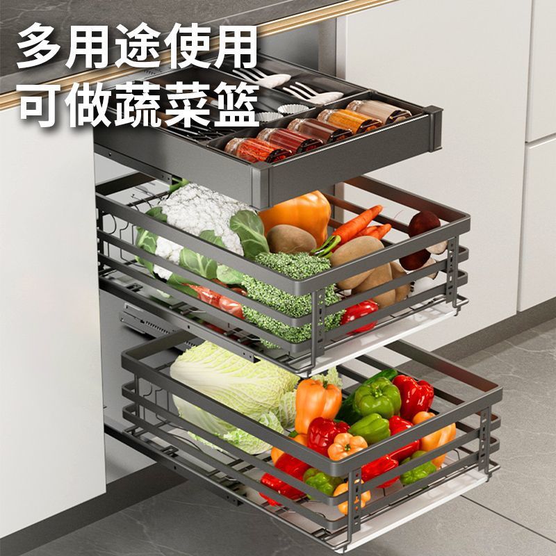 厨房橱柜拉篮 小尺寸碗碟盘304不锈钢三层窄柜果蔬收纳调味拉篮
