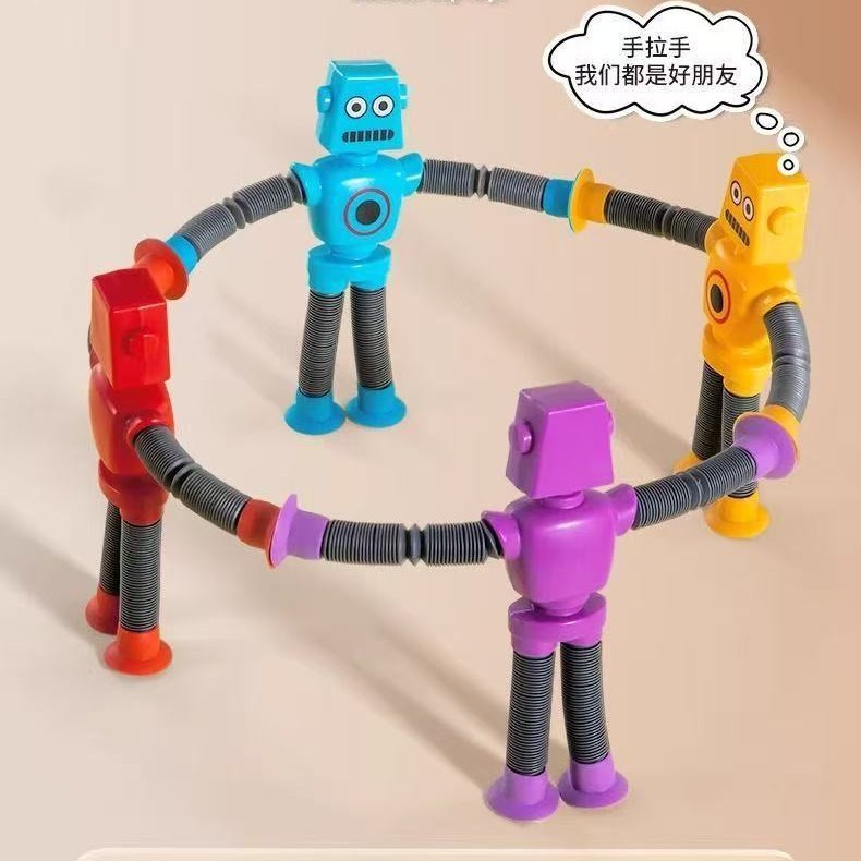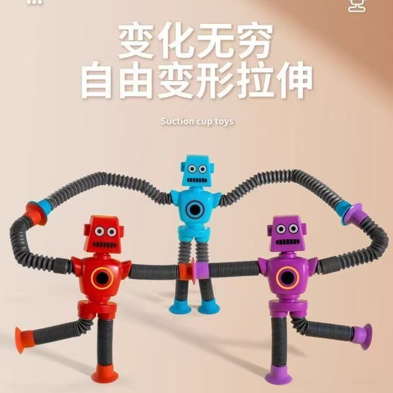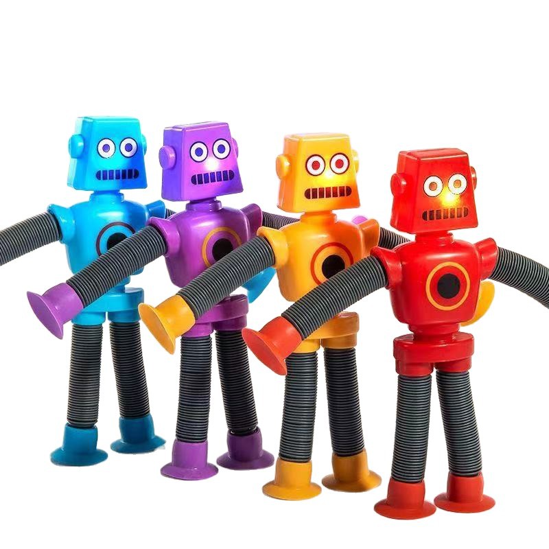 吸盘机器人百变发光卡通伸缩儿童宝宝益智亲子互动拉伸管解压玩具
