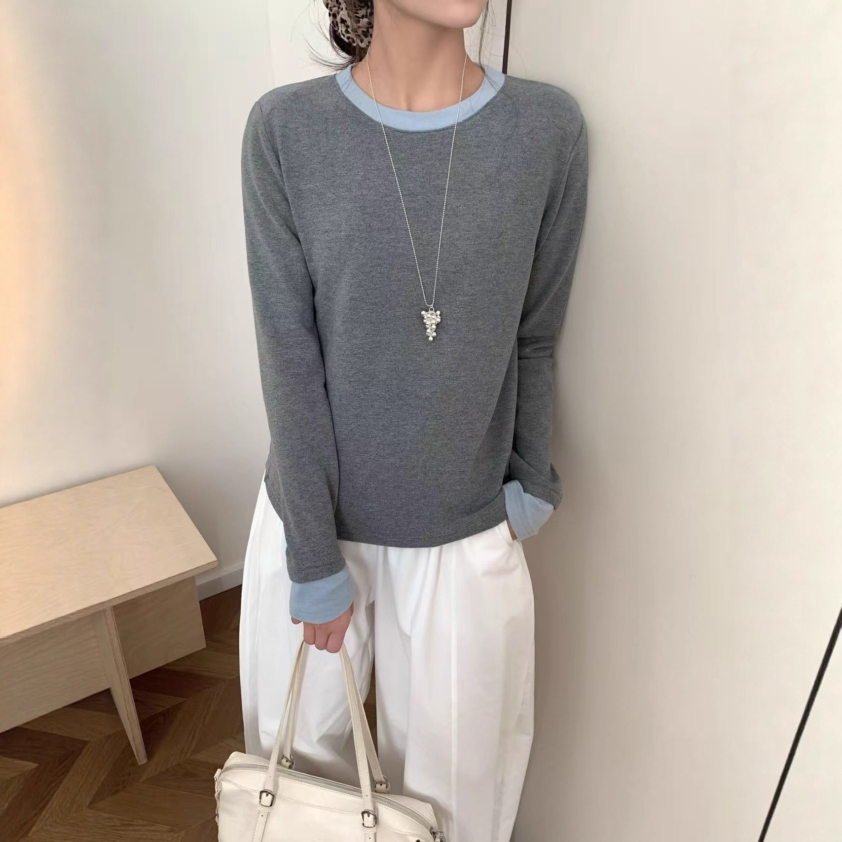 【撞色内搭】新款韩系内搭毛织长袖上衣25722