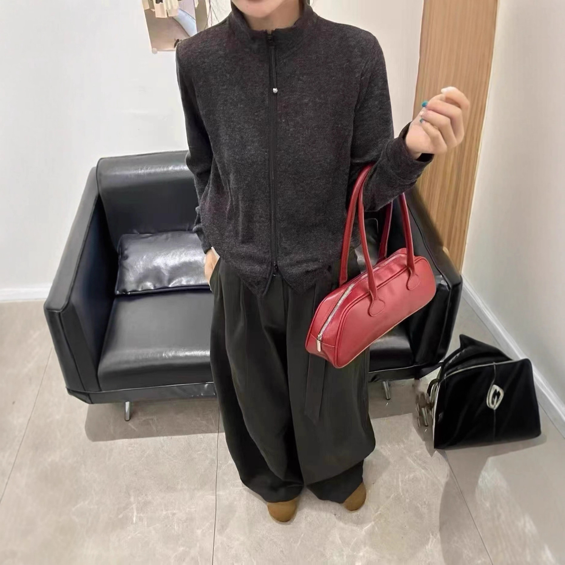 2025秋韩系双拉链立领长袖卫衣2025宽松显瘦百搭洋气短外套上衣女
