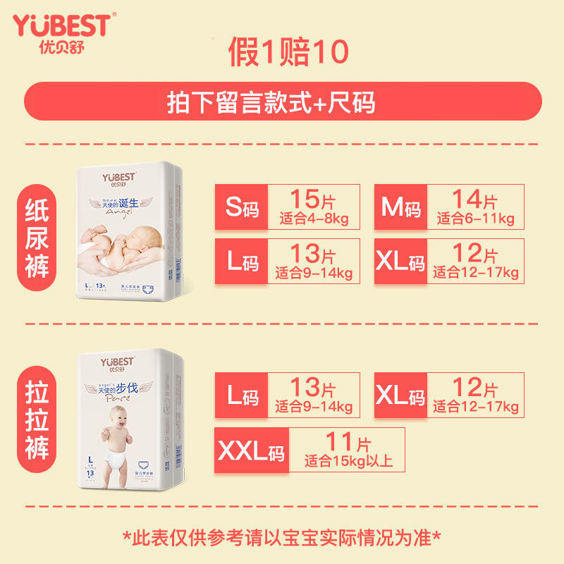 规格 | 优贝舒天使纸尿裤XL12片 | | 规格 | 优贝舒天使拉拉裤L13片 |