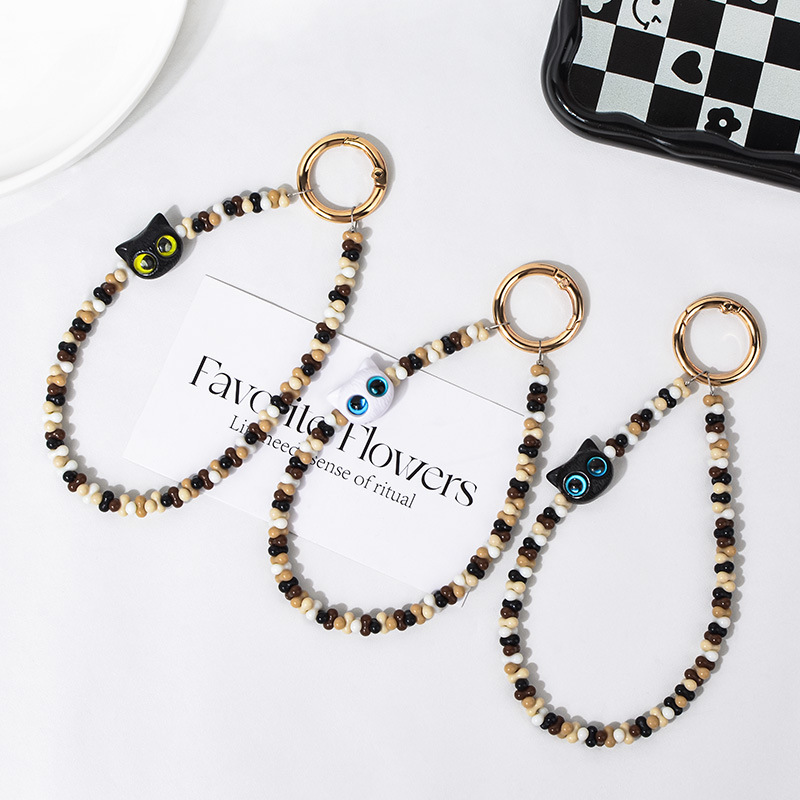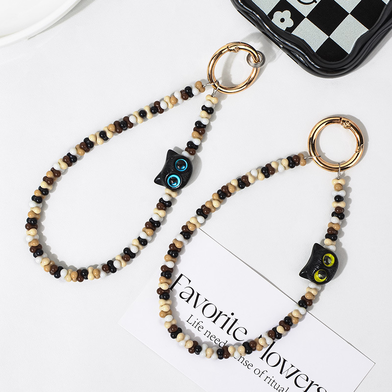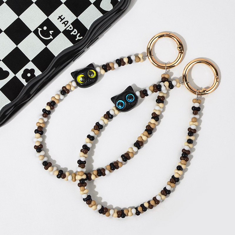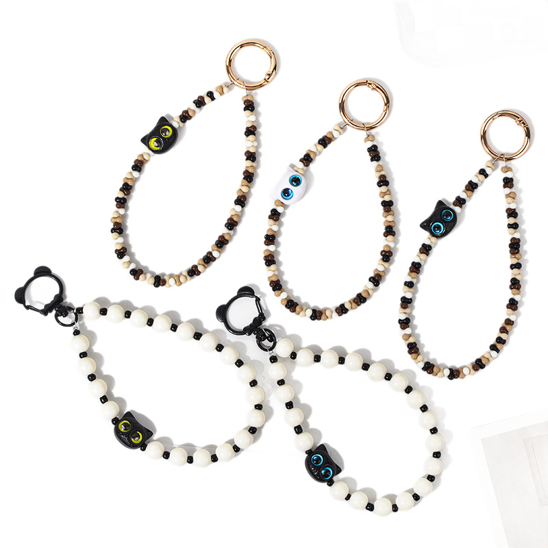 新款卡通猫头串珠吊坠手机挂件时尚百搭饰品挂饰创意防丢手机链