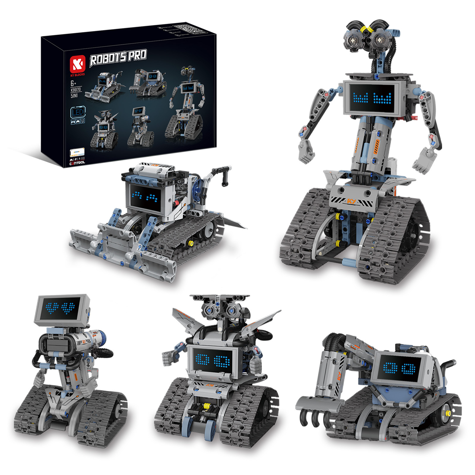 跨境新品LED屏幕表情变化灯光星际机器人积木编程小颗粒积木玩具
