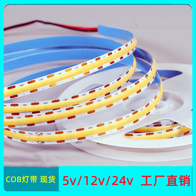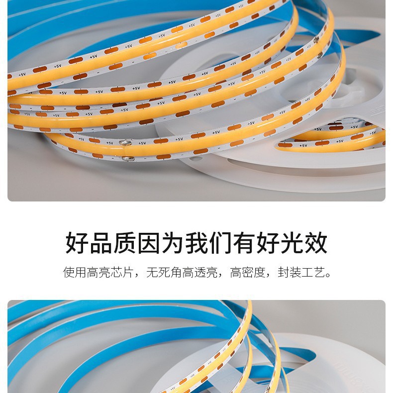 COB灯带5V超窄5mm高亮LED柔性灯条12V吊顶橱柜衣柜嵌入式线性灯