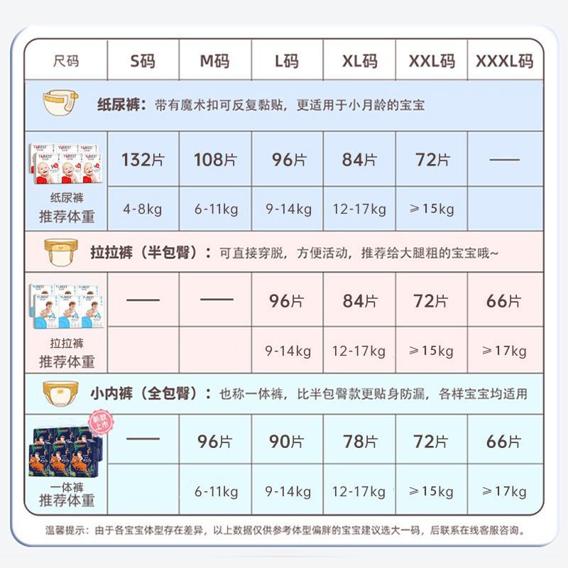 | 规格 | 优趣拉拉裤XXXL11片*6包 | 规格 | 优趣纸尿裤S22片*6包 |