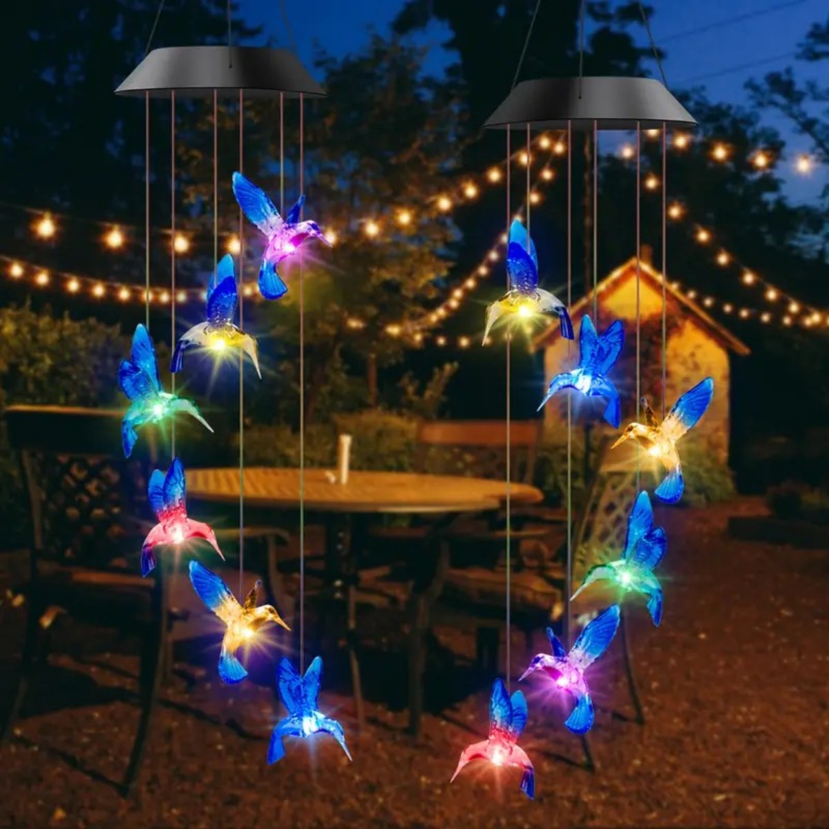 太阳能蜂鸟风铃灯led露营灯七彩渐变户外庭院花园装饰氛围吊灯