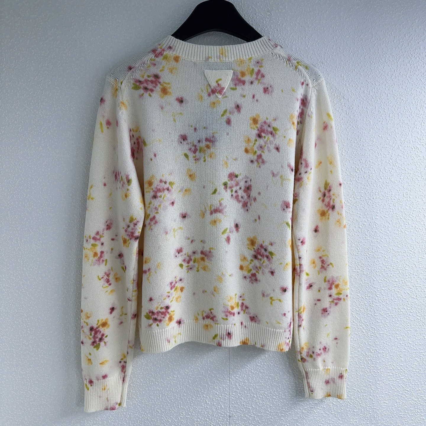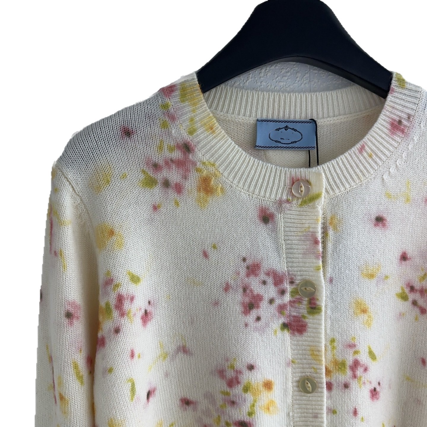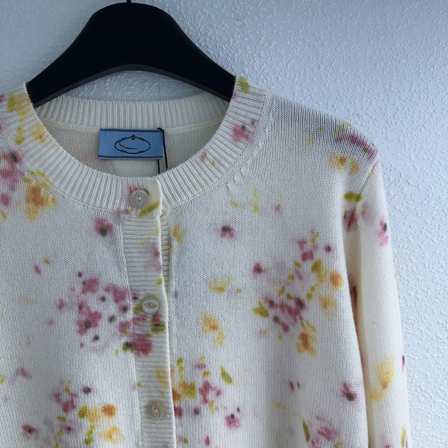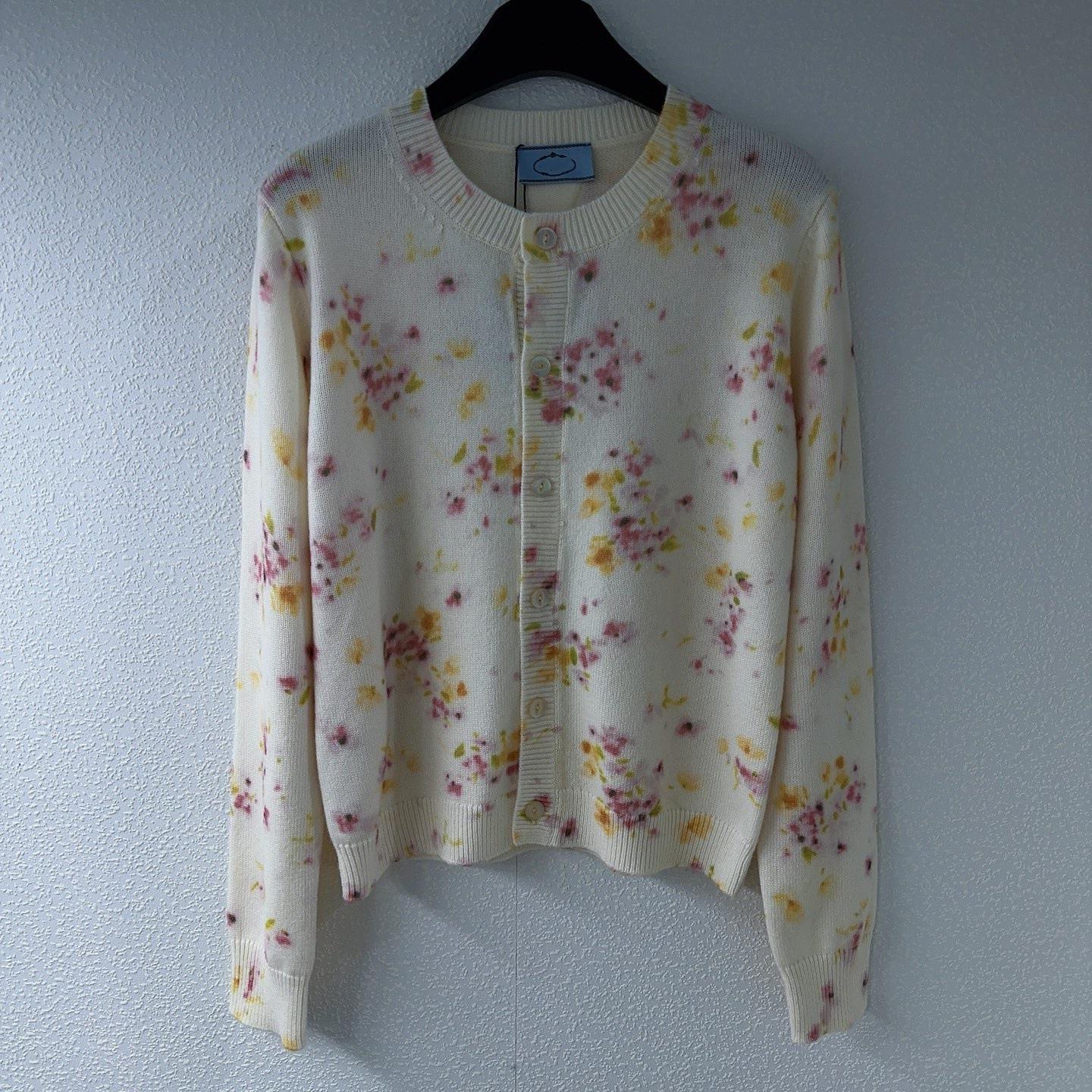 南油高货P家 明星同款 重工小碎花印花圆领长袖针织开衫外套女
