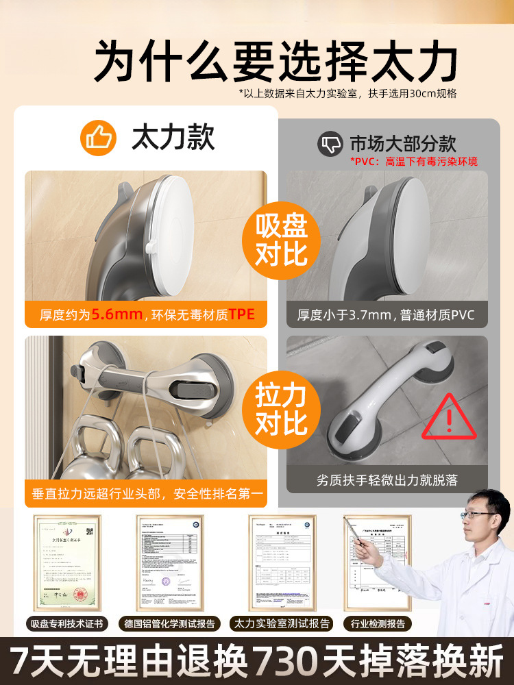 太力卫生间浴室防滑扶手栏杆老人吸盘安全扶手马桶吸盘拉把手辅助