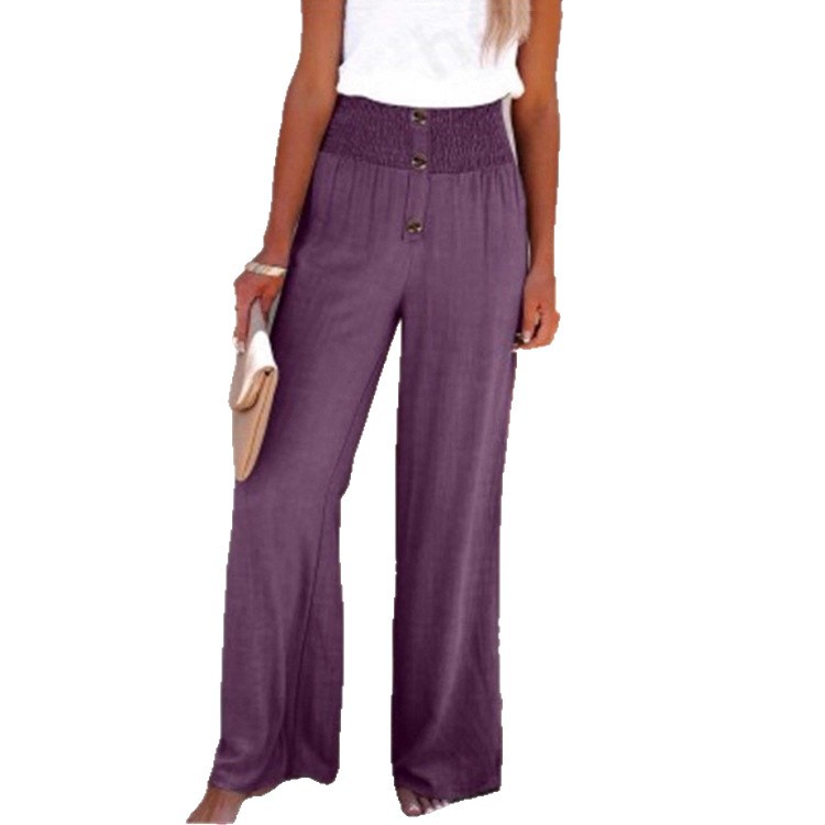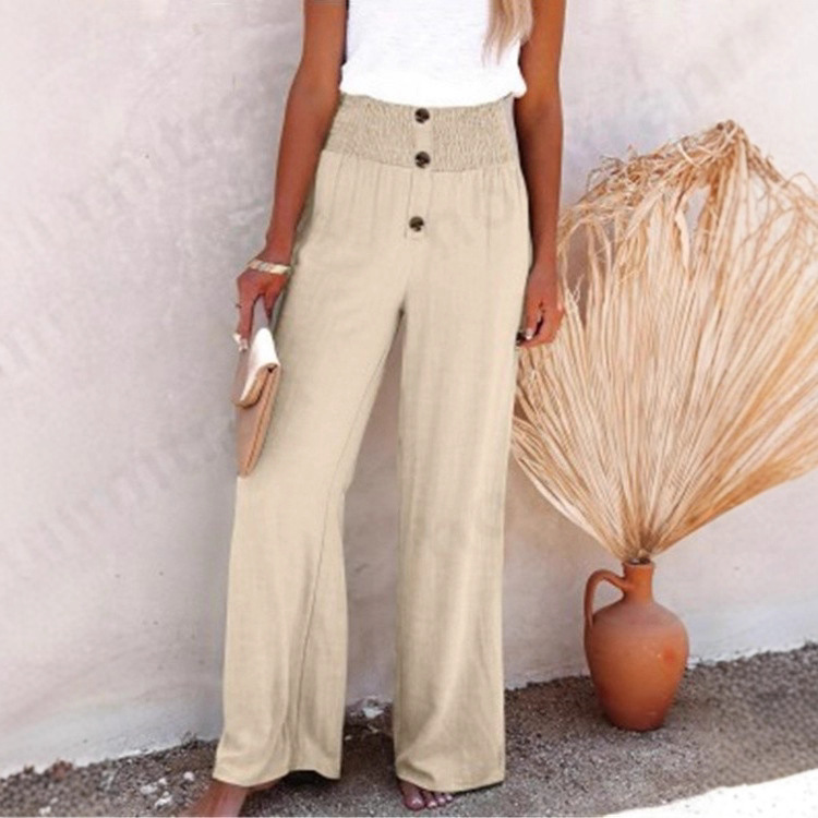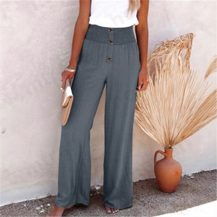 现货女装欧美亚马逊春夏新品 女士纯色竹节棉麻纽扣阔腿休闲裤