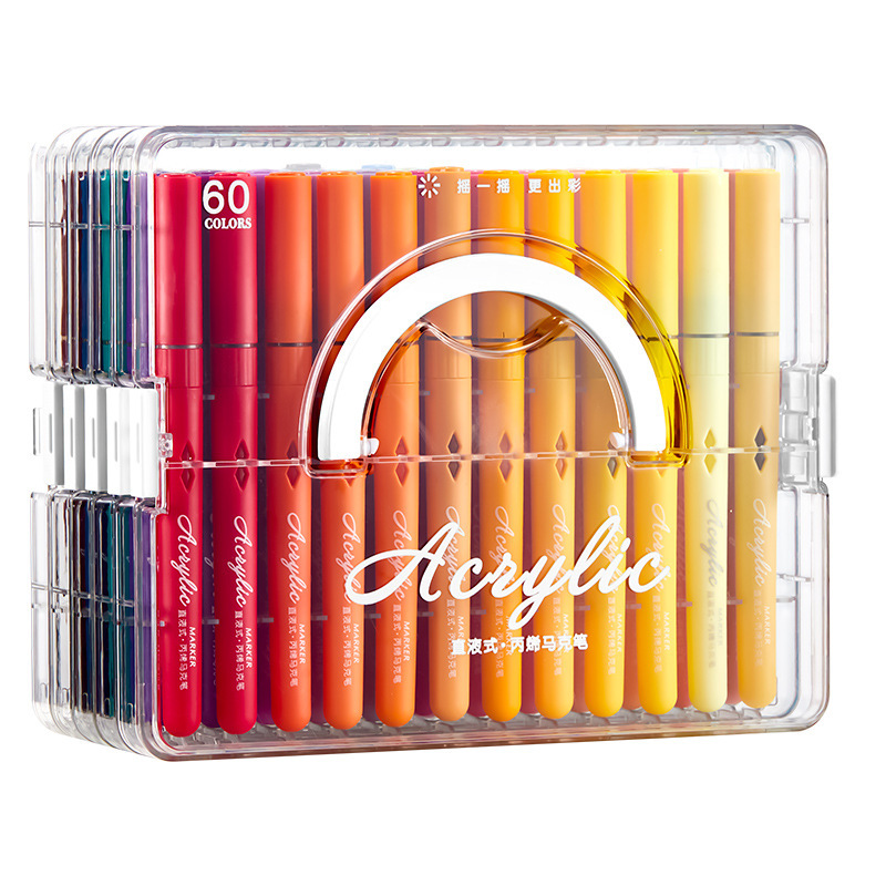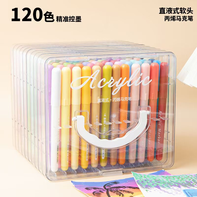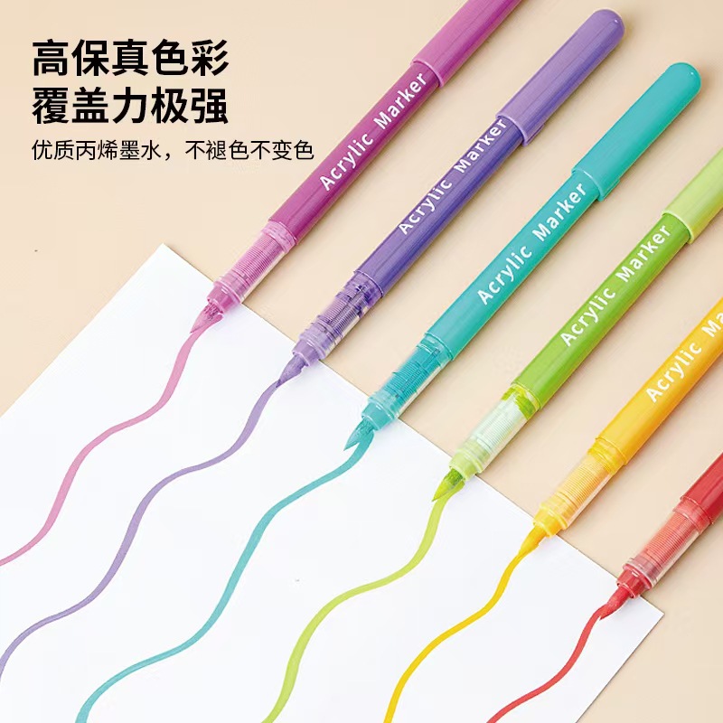 直液式丙烯马克笔软头层叠盒可水洗美术画画不易透纸彩色笔批发