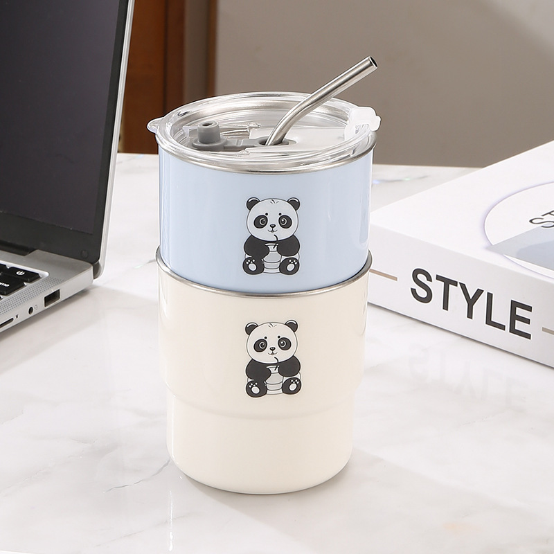 304不锈钢咖啡杯卡通马克杯学生便携吸管水杯高颜值