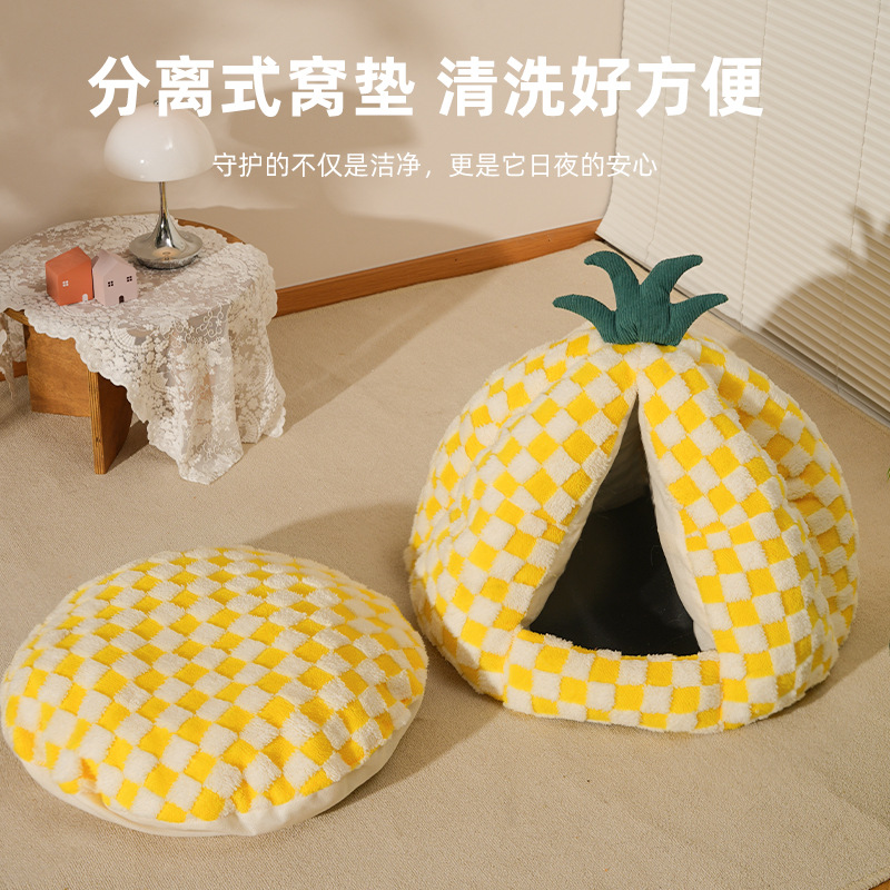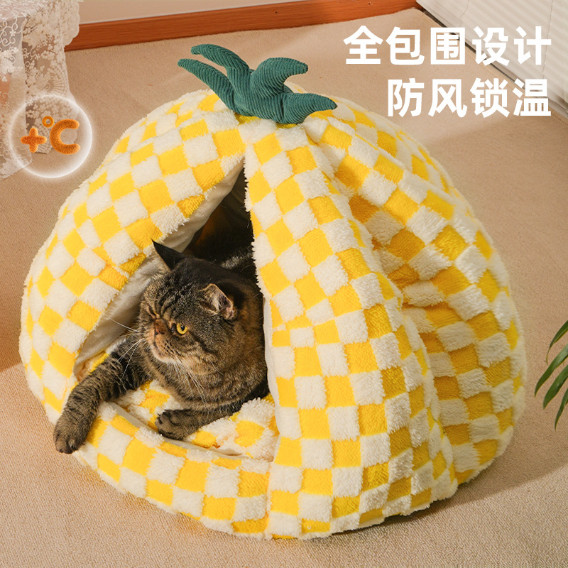 新款冬季加厚保暖创意凤梨猫窝四季通用猫咪小型犬狗窝猫房子用品