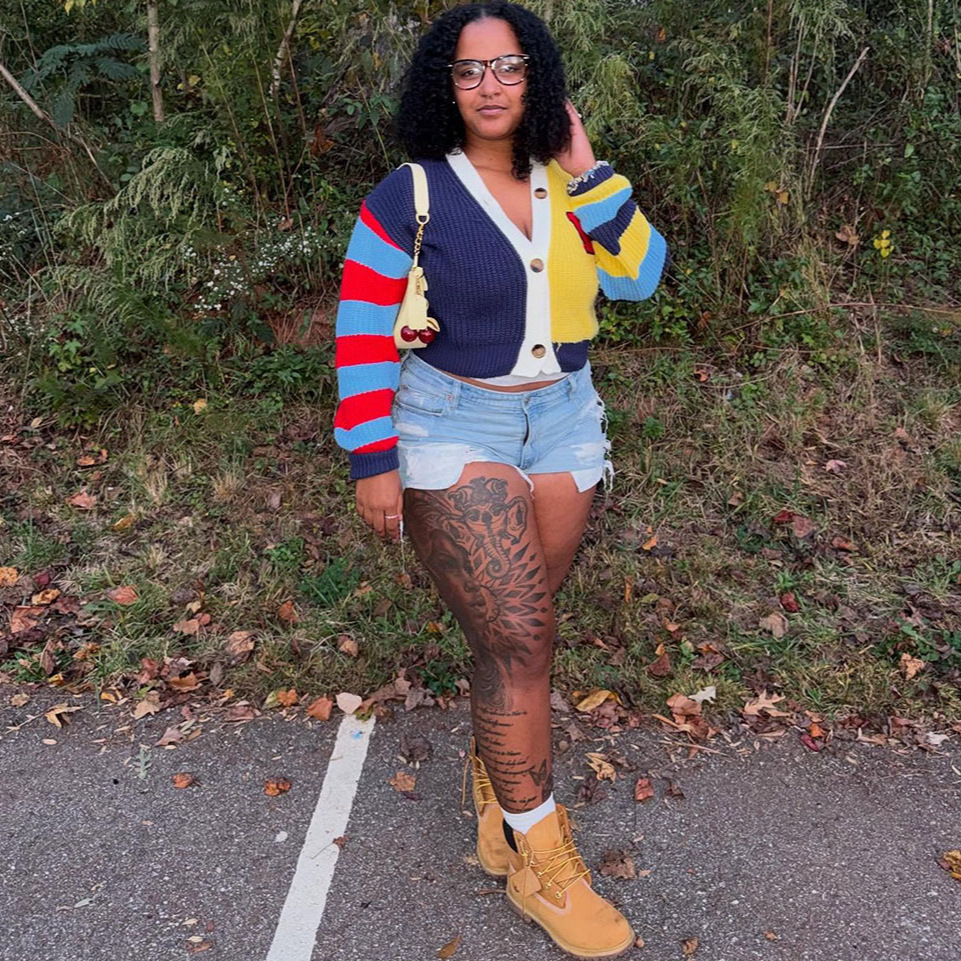 欧美女式毛衣外套亚马逊跨境秋冬女装街时尚条纹撞色长袖开衫外套