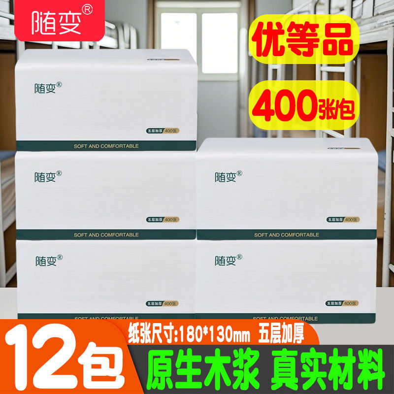 随变纸巾400张/包加厚五层抽纸卫生纸批发整箱