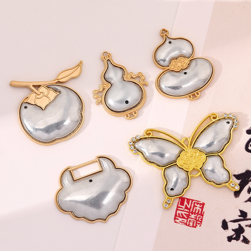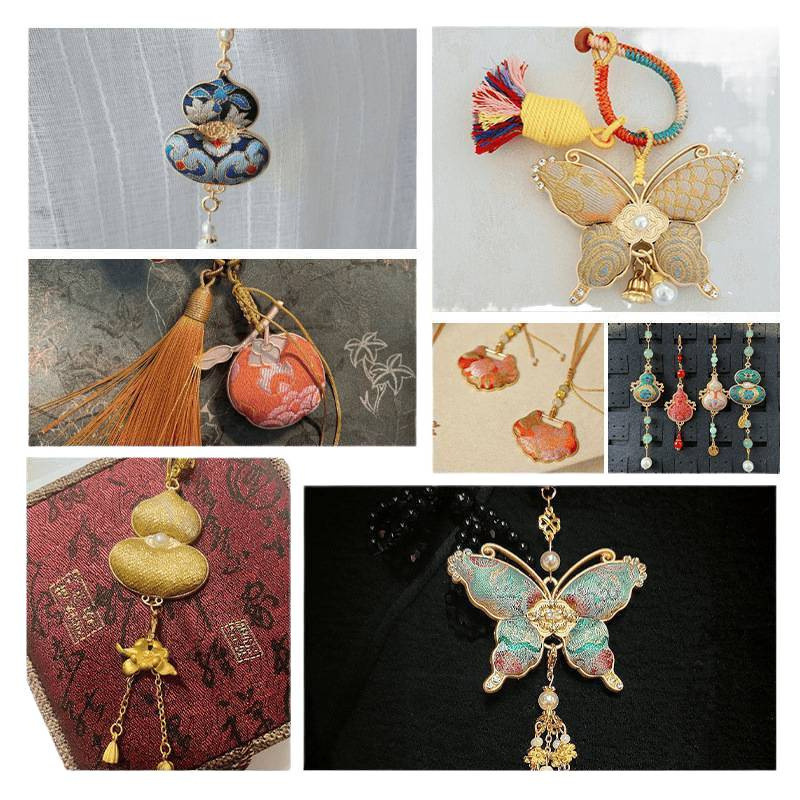 手工宋锦刺绣挂件底托包布柿柿如意葫芦蝴蝶吊坠底托座复古配饰