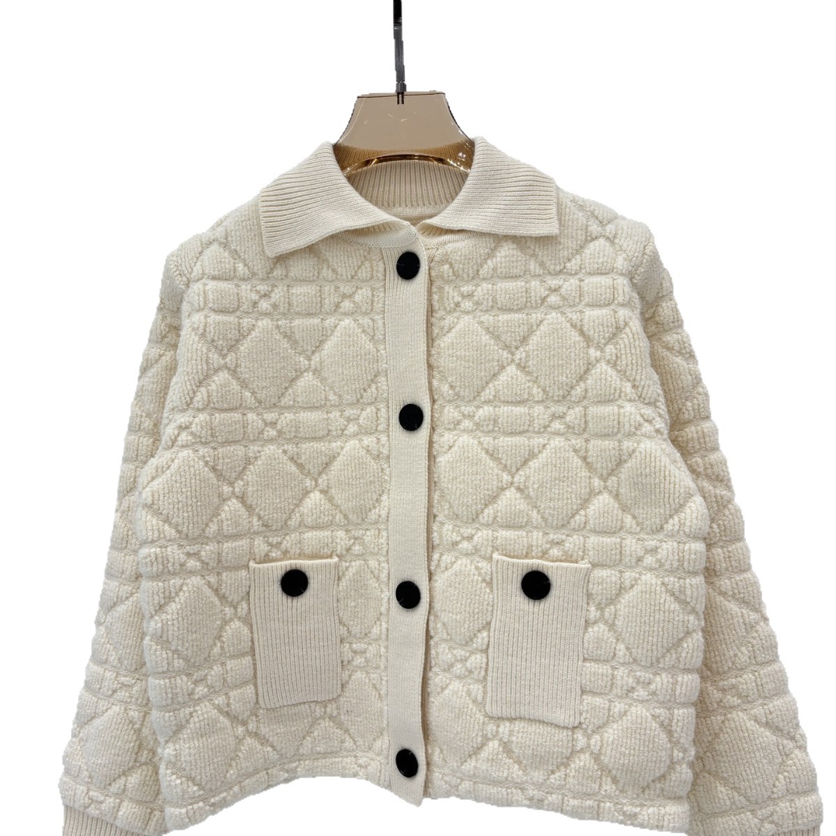 深圳南油D家2025秋冬款经典菱形格纹翻领单排扣外套女