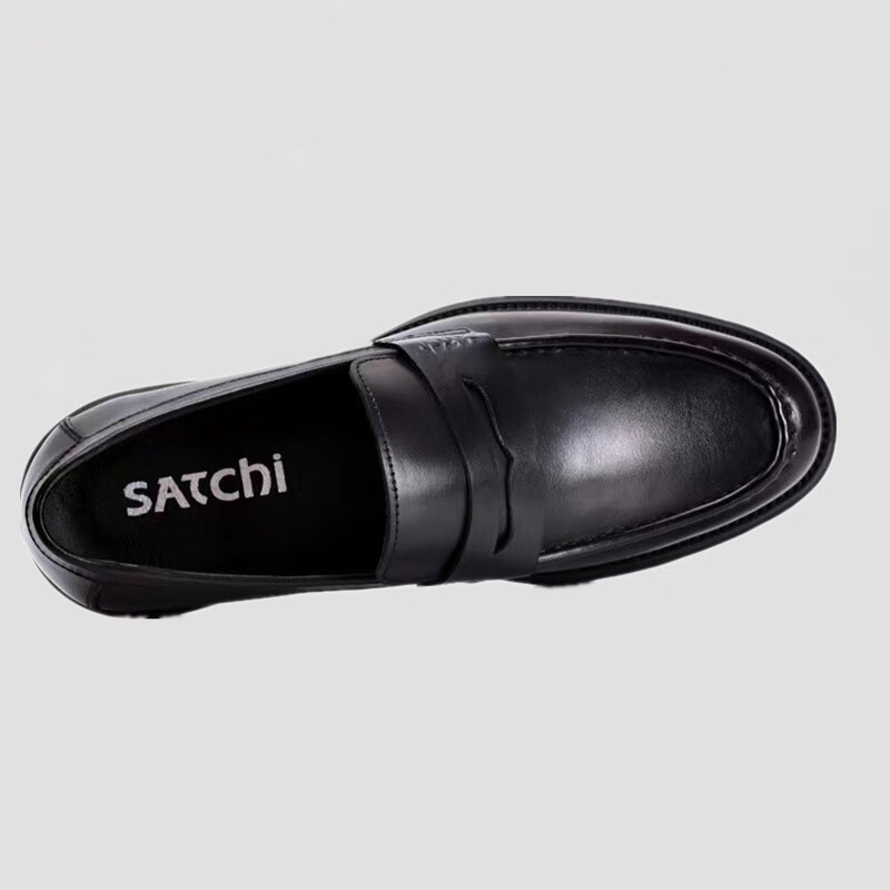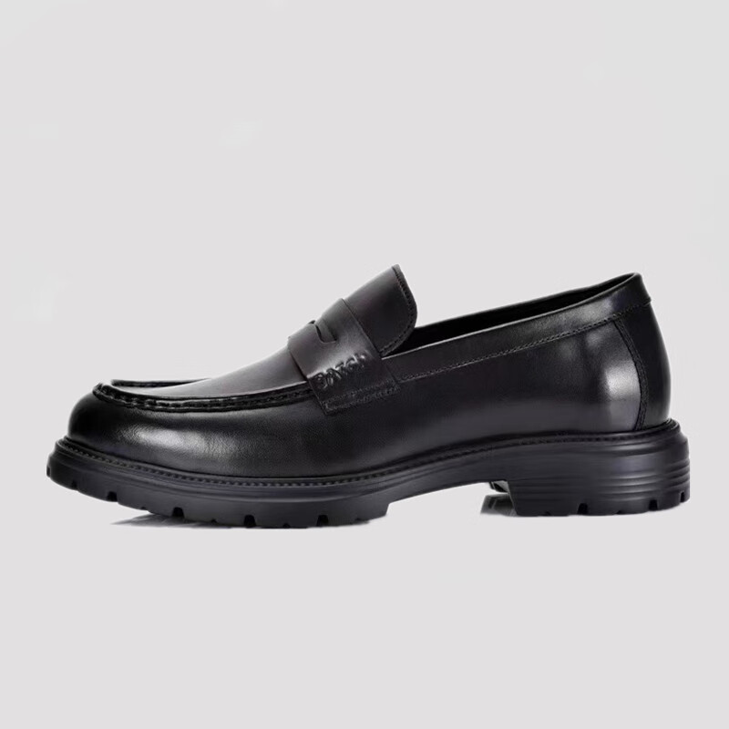沙驰男鞋男士商务皮鞋真皮头层牛皮一脚蹬休闲鞋厚底轻便乐福鞋潮