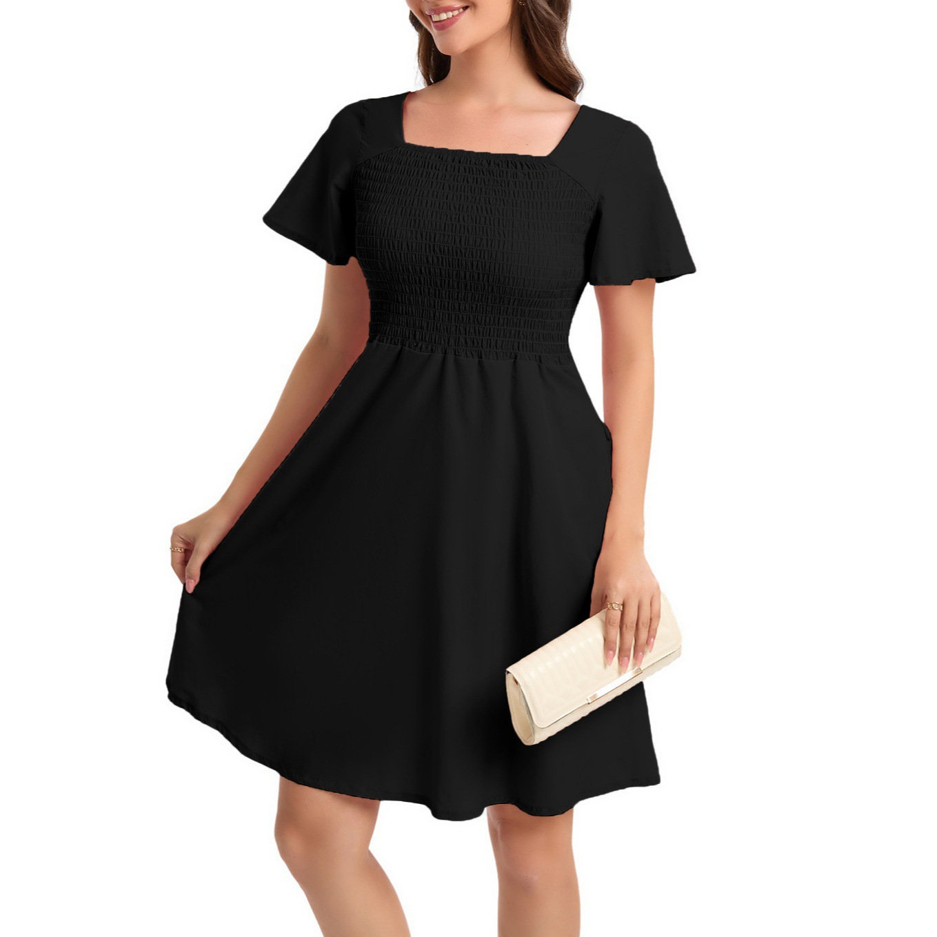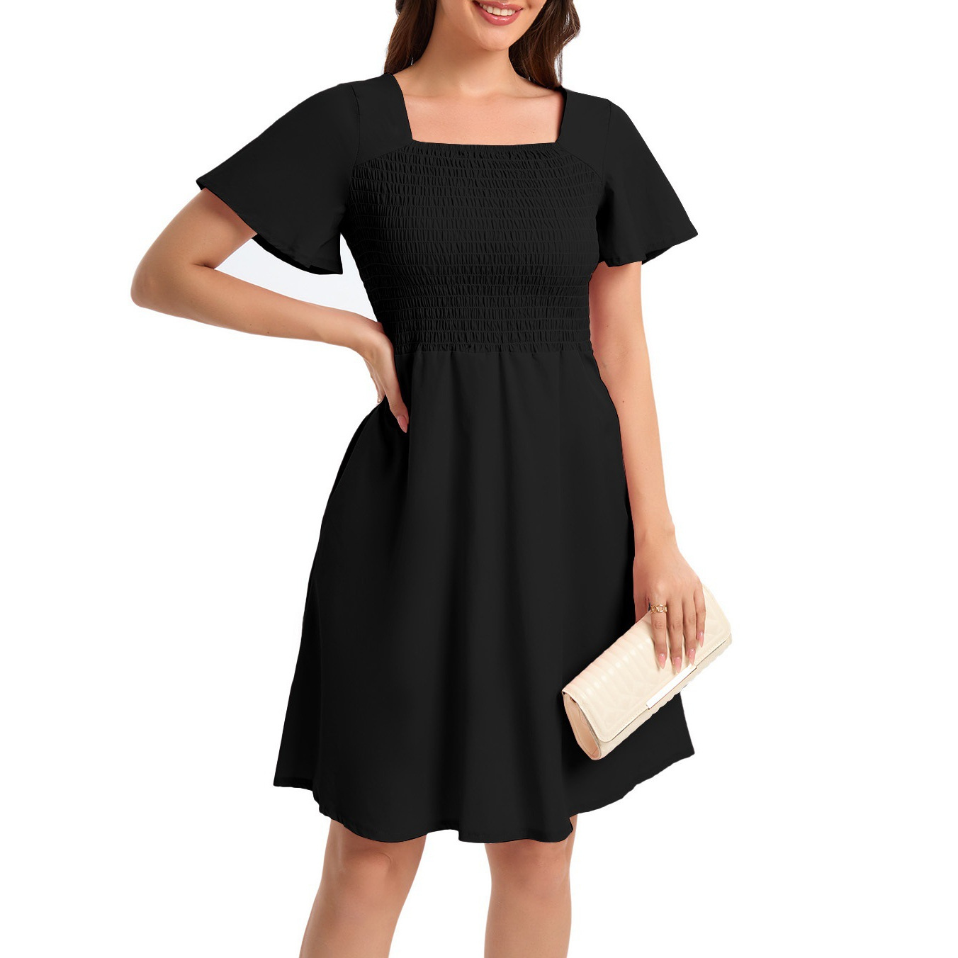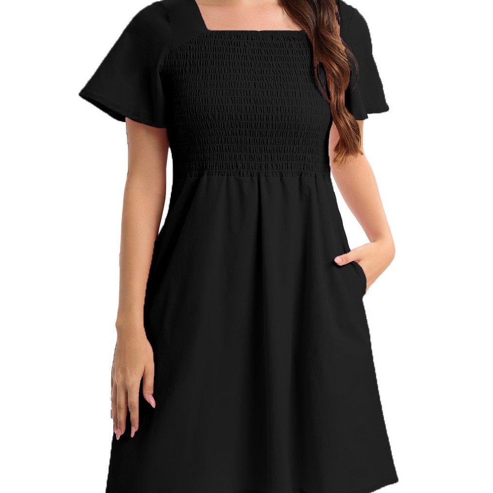 欧美2025跨境新款波西米亚风连衣裙女带口袋缩褶荷叶边沙滩吊带裙