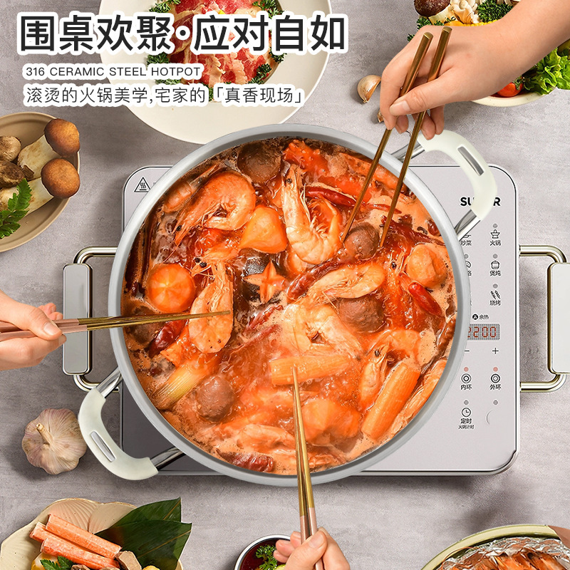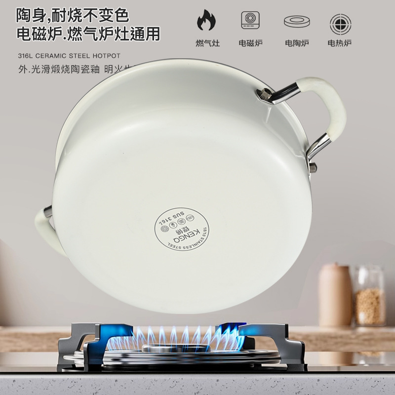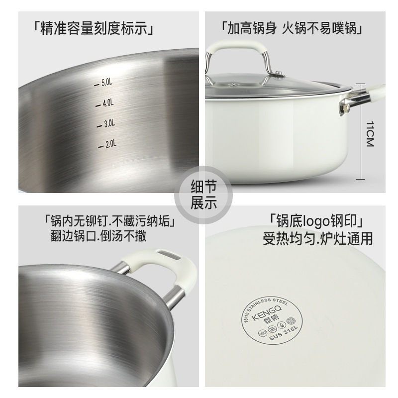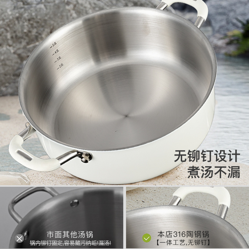 双耳煮粥锅清汤锅无涂层316不锈钢加深汤锅多功能蒸煮一体锅