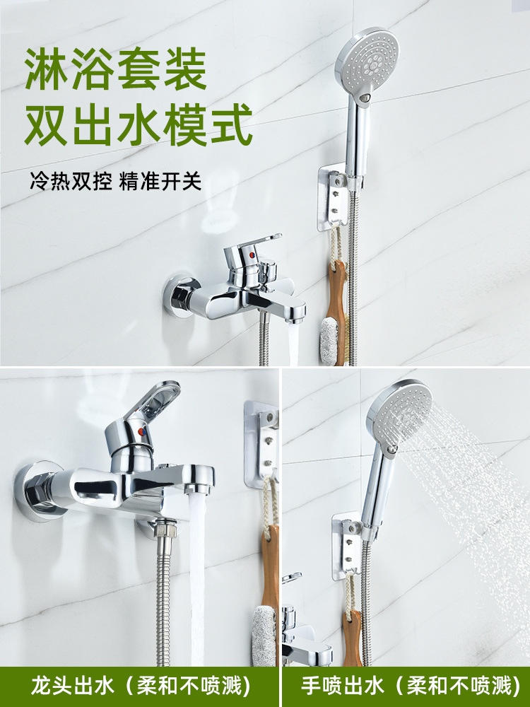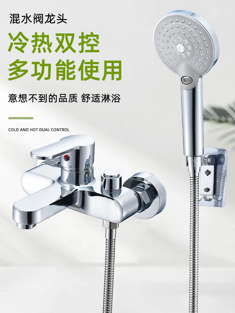 全铜通用型冷热淋浴龙头电热水器混水阀暗装三联浴缸龙头花洒套装