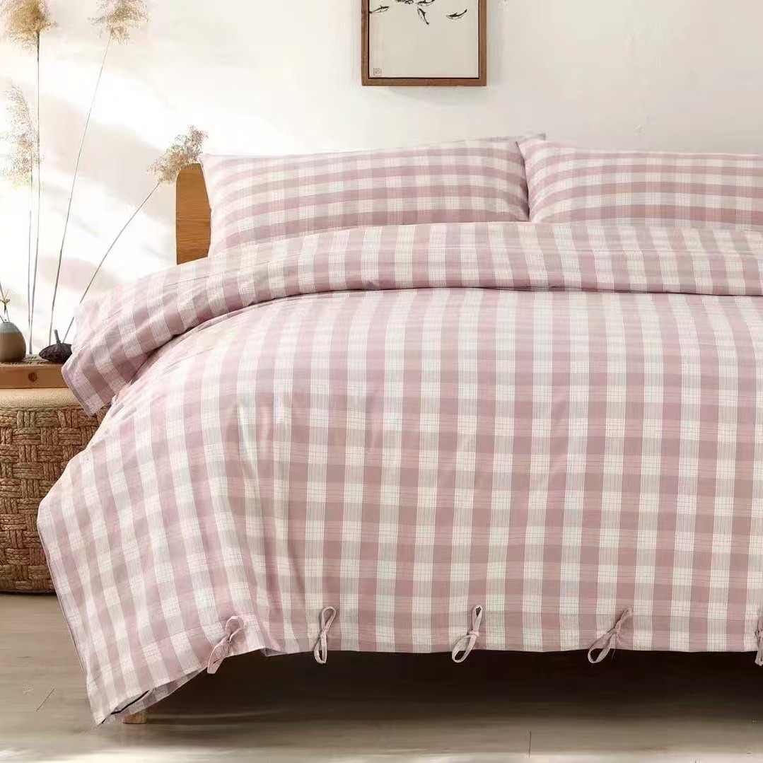 精梳全棉老粗布四件套床上用品民宿家用双人简约条纹格子床单被套