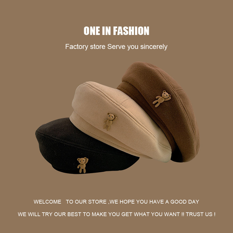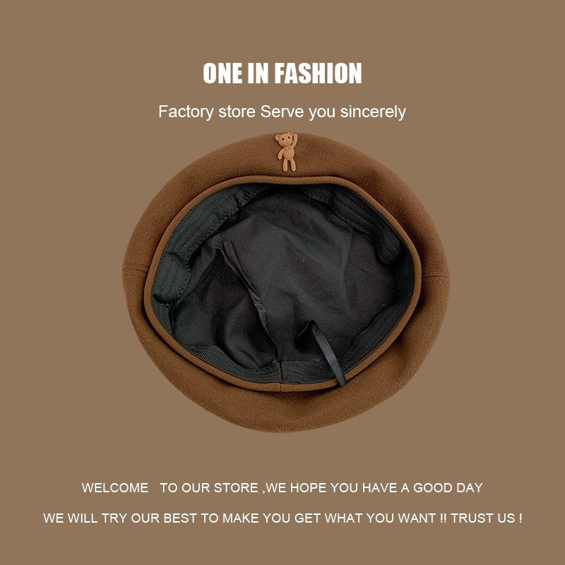 颜色 | 小熊标贝雷帽-咖啡色 | | 颜色 | 小熊标贝雷帽-黑色 |