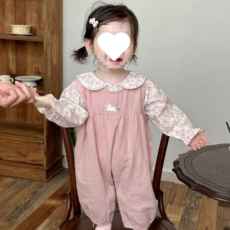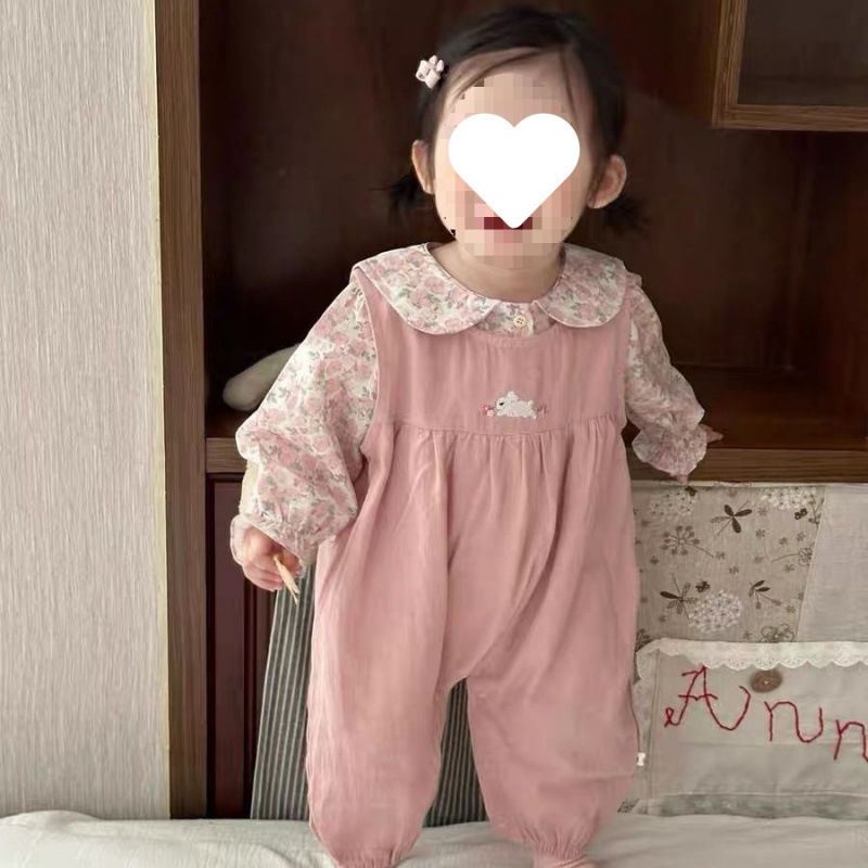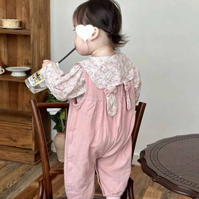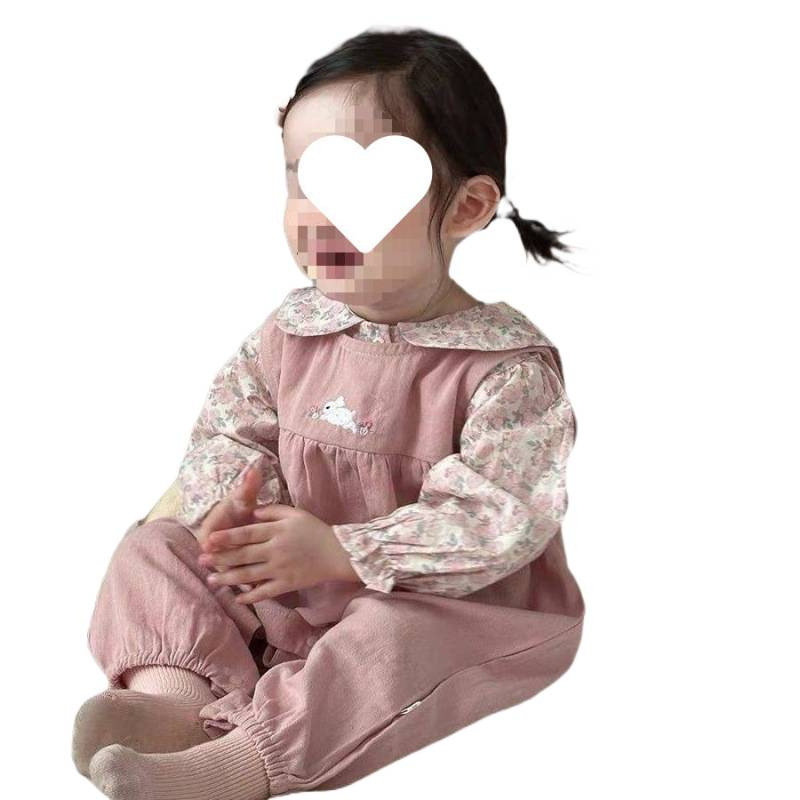 春秋套装洋气宝宝甜美碎花衬衫婴幼儿碎花背带裤两件套婴儿衣服女