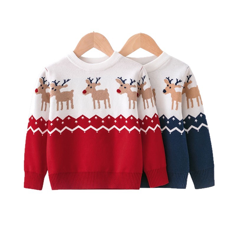 欧美外贸爆款秋冬圣诞毛衣亲子装一家三口儿童麋鹿提花套头针织衫