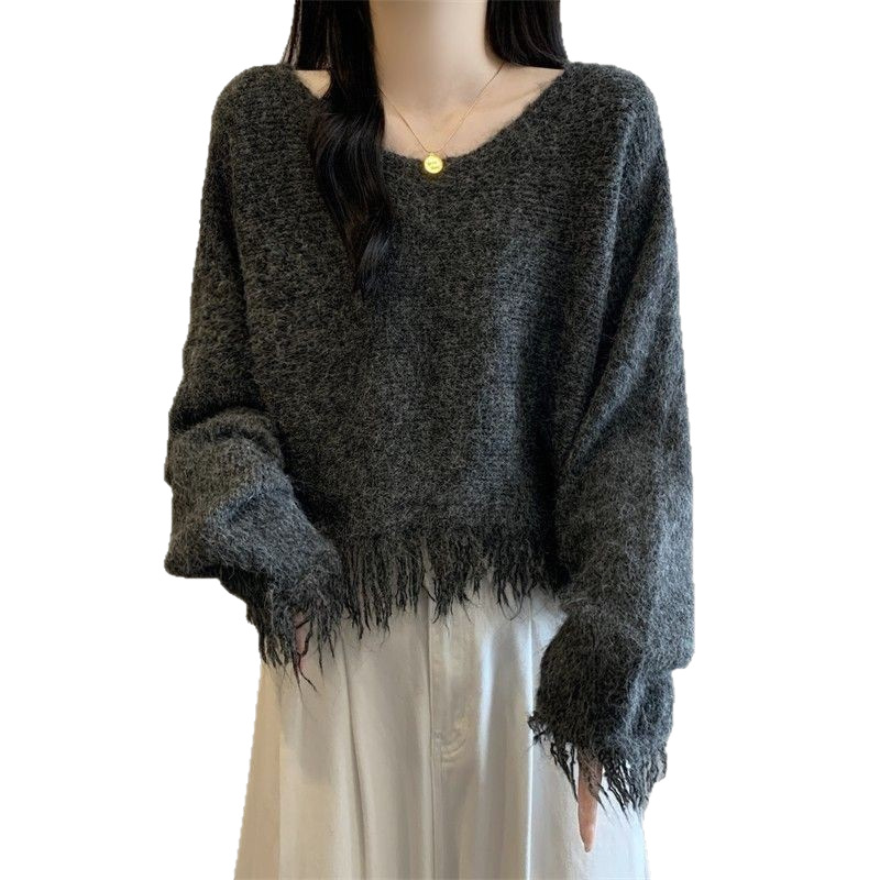 韩系秋季针织衫流苏长袖毛衣2025秋冬新款显瘦宽松打底衫短款毛衣