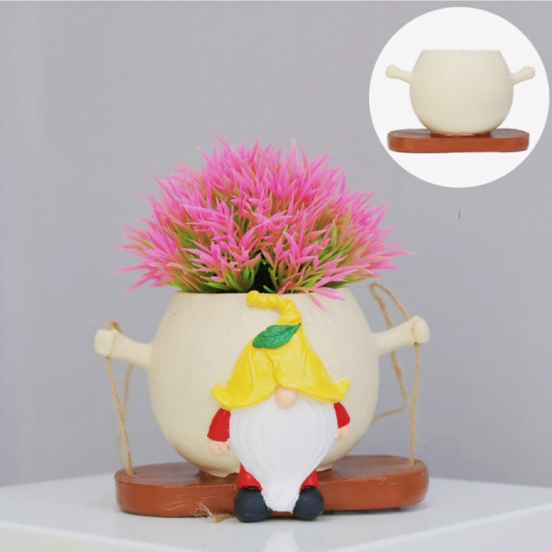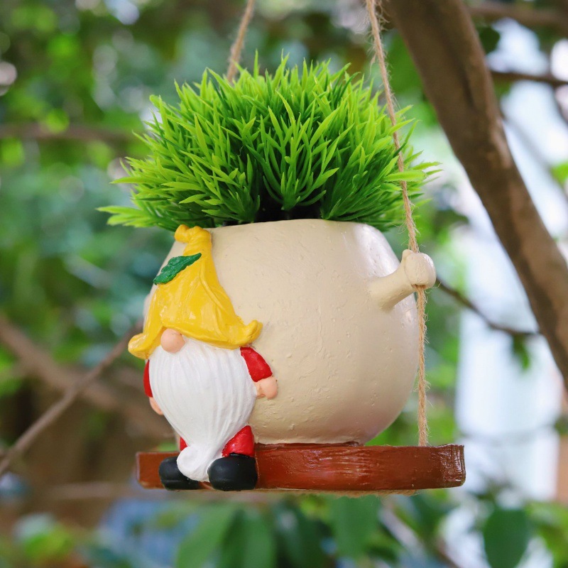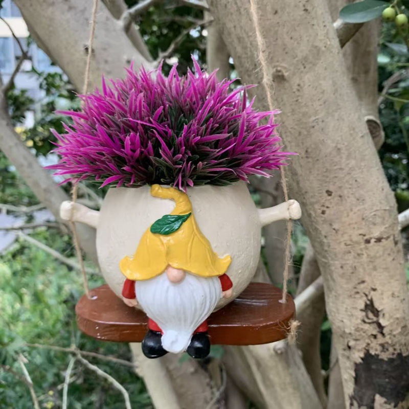 新款创意开心侏儒荡秋千悬挂吊蓝花盆户外花园庭院装饰树脂工艺品