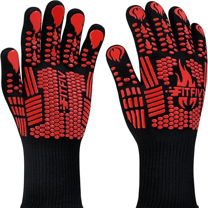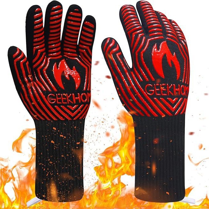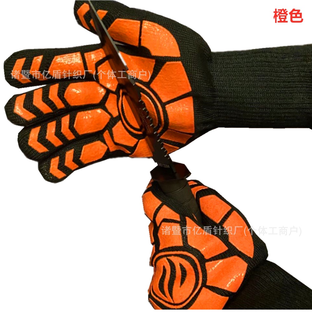 现货耐高温防烫BBQ阻燃防火烧烤五指手套隔热硅胶微波炉烤箱手套