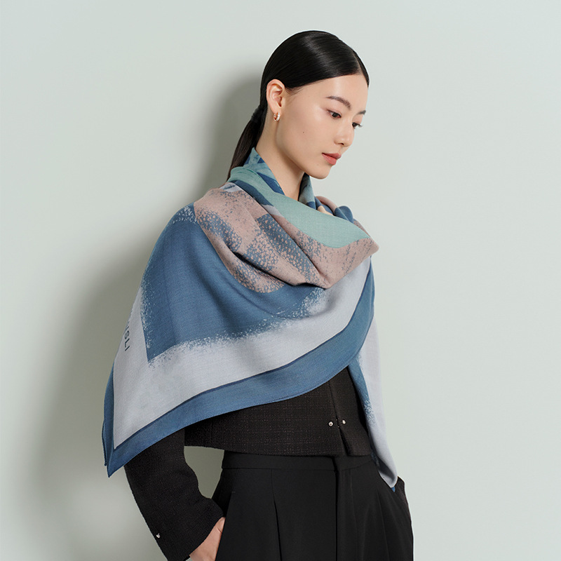 万事利2025门店款秋冬季丝羊毛围巾披肩大方巾空谷香-丝羊毛围巾
