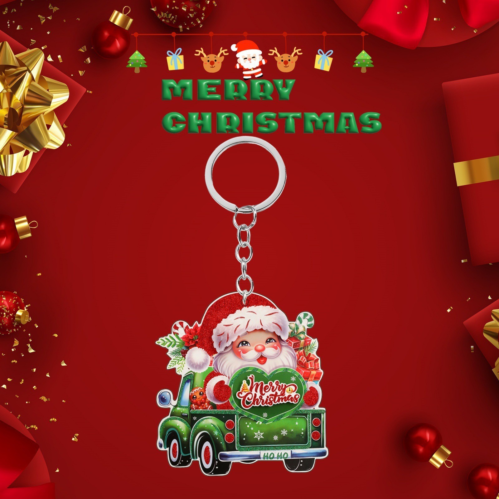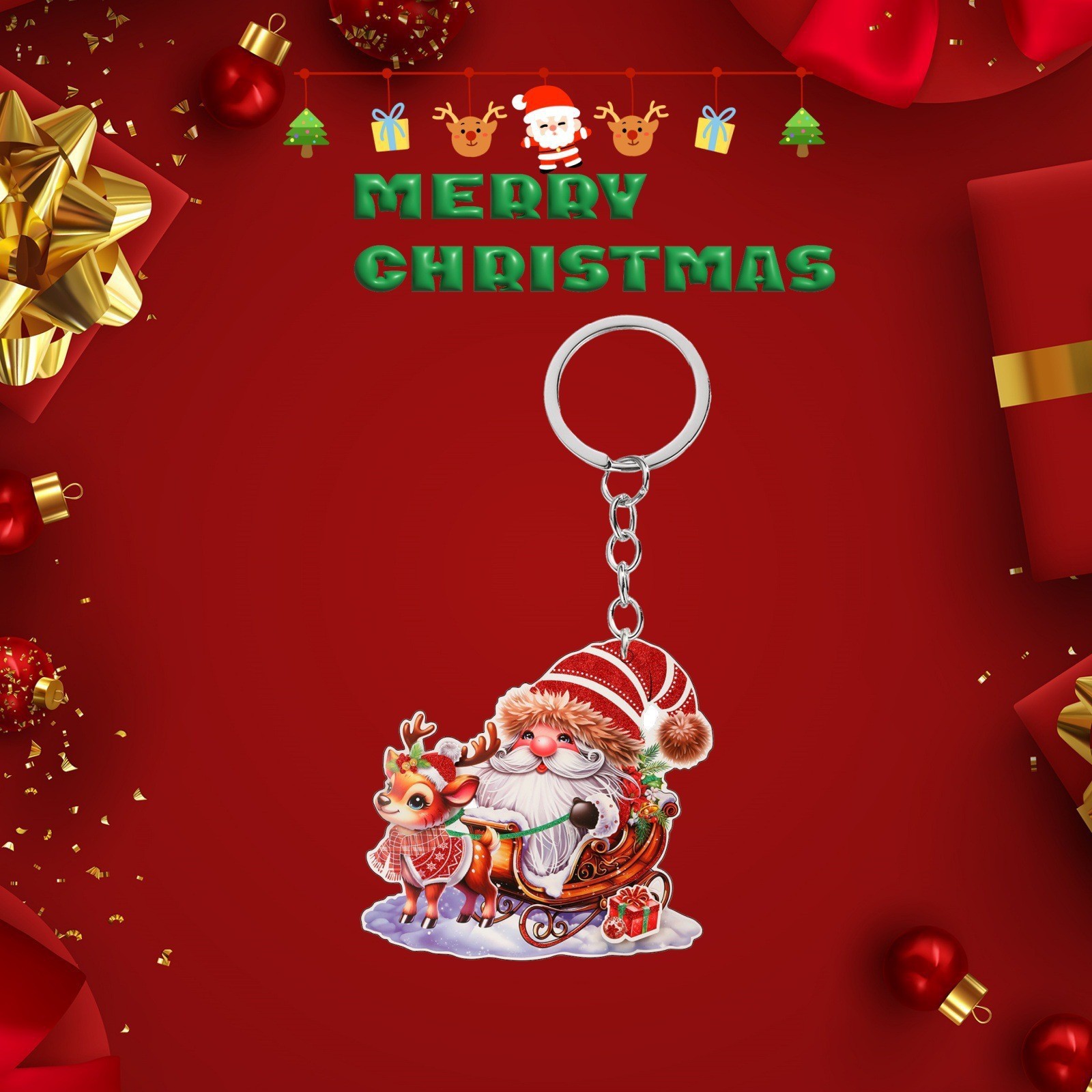 跨境圣诞节钥匙扣礼物挂件亚克力2D新款圣诞派对背包装饰品礼盒