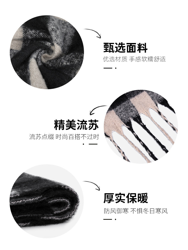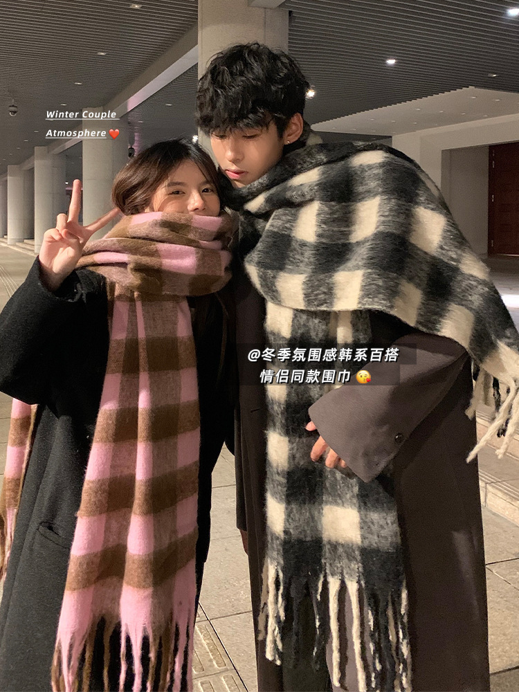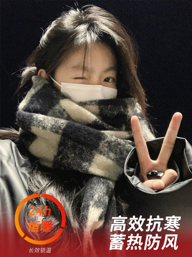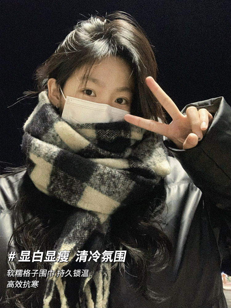 围巾秋冬季女高级氛围感新款黑白格子韩系情侣保暖加厚围脖