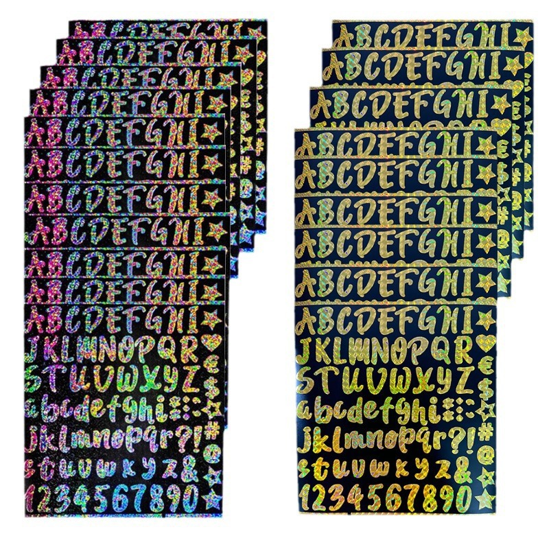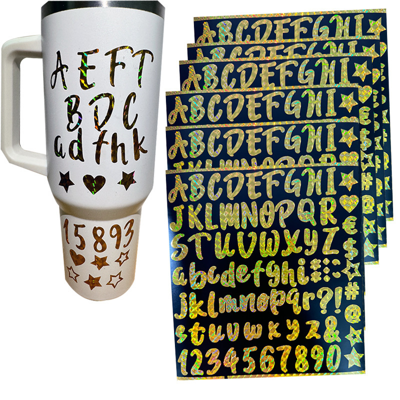 跨境现货1英寸diy水杯防水字母数字贴纸闪光不干胶彩色贴纸标签