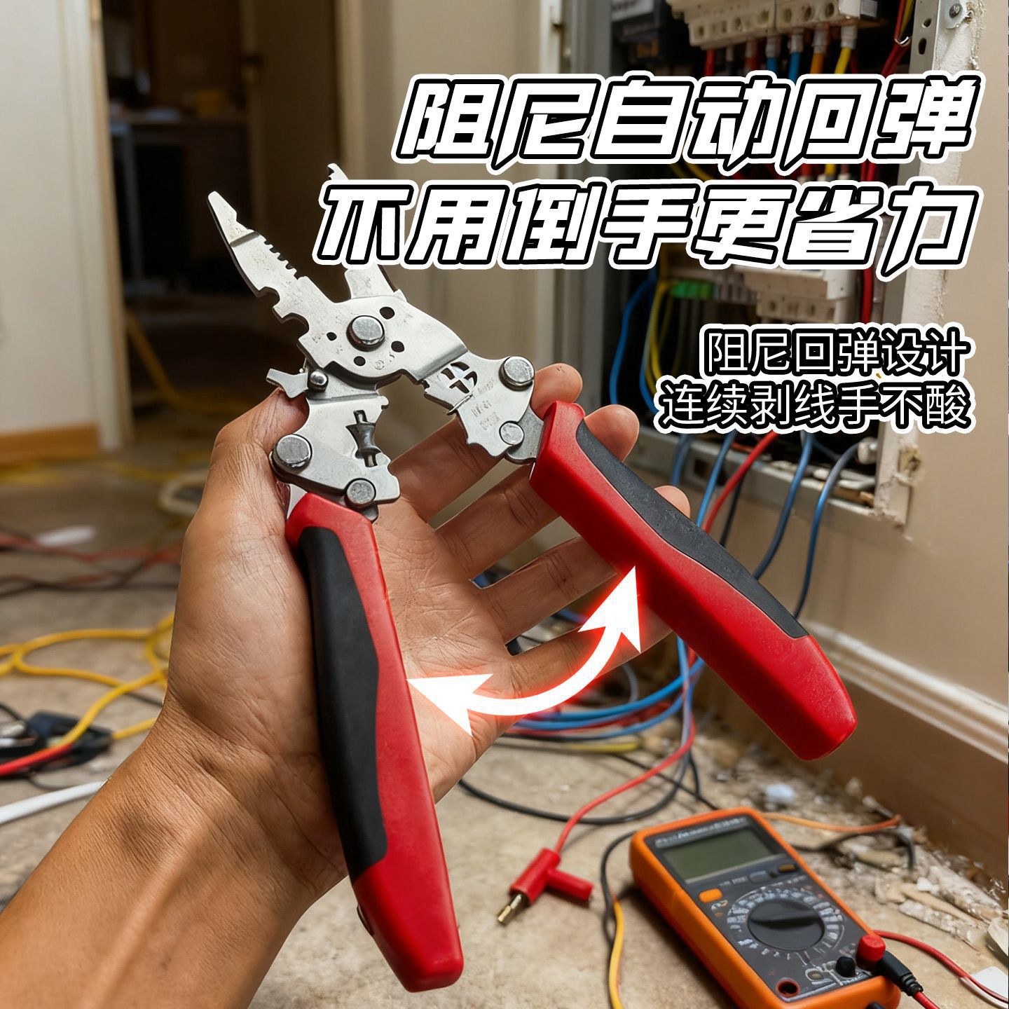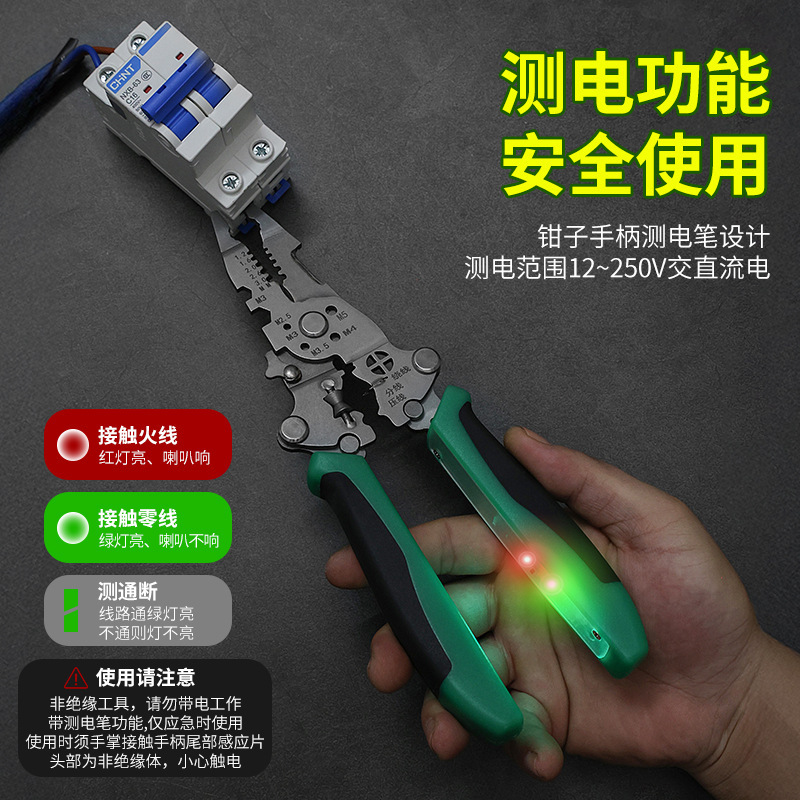 跨境新款带拉线测电笔剥线钳电工专用剪线拔线扒皮线槽多功能折叠