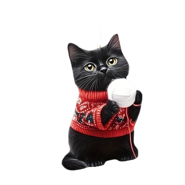 跨境新款2D圣诞节红毛衣雪纳瑞拿着拐杖糖挂饰亚克力挂饰圣诞树