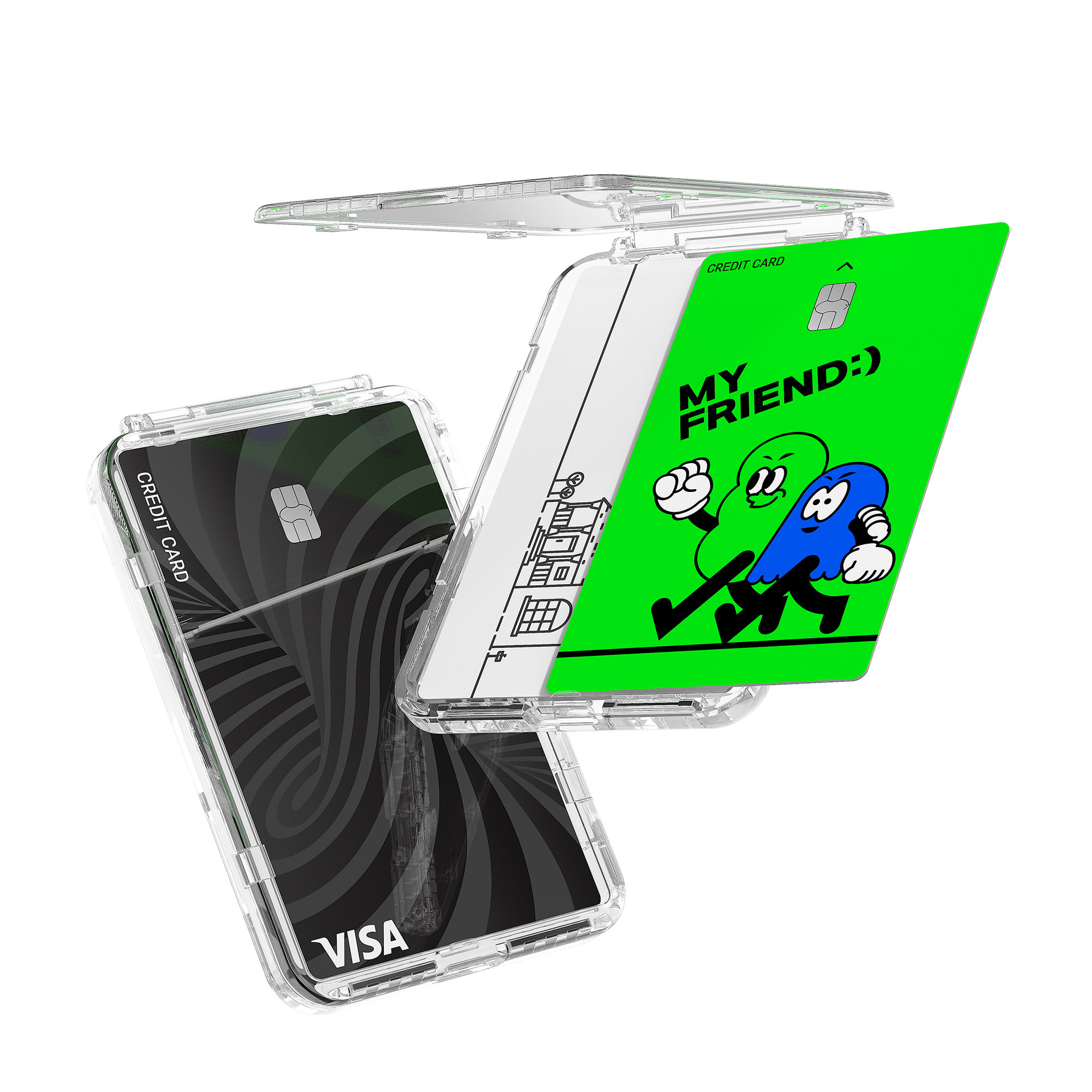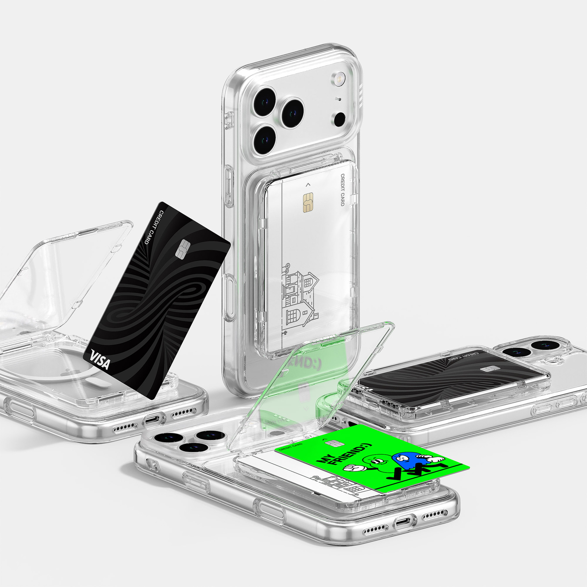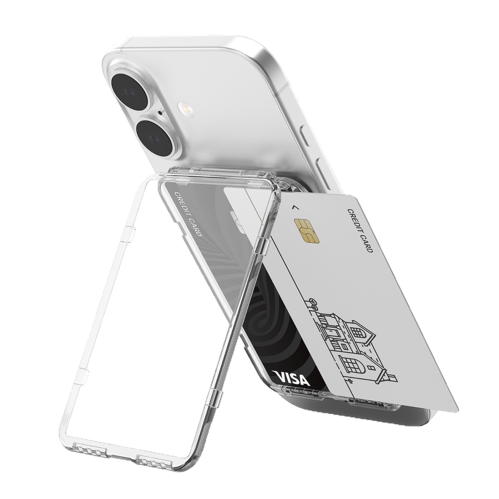 PC透明折叠Magsafe手机壳通用翻盖磁吸卡包支架证件收纳磁吸支架