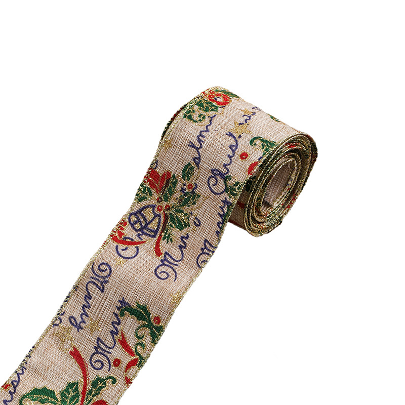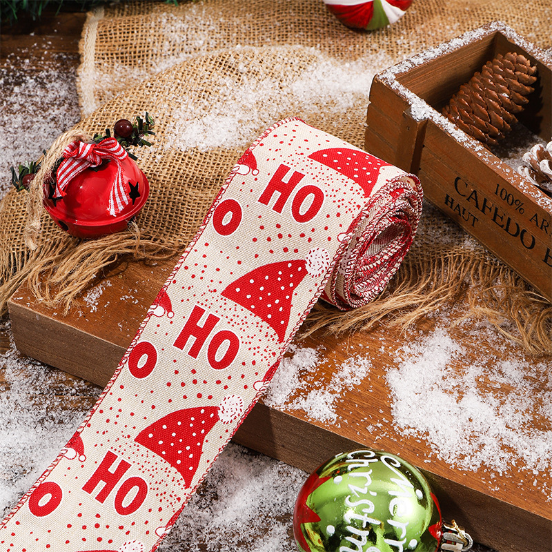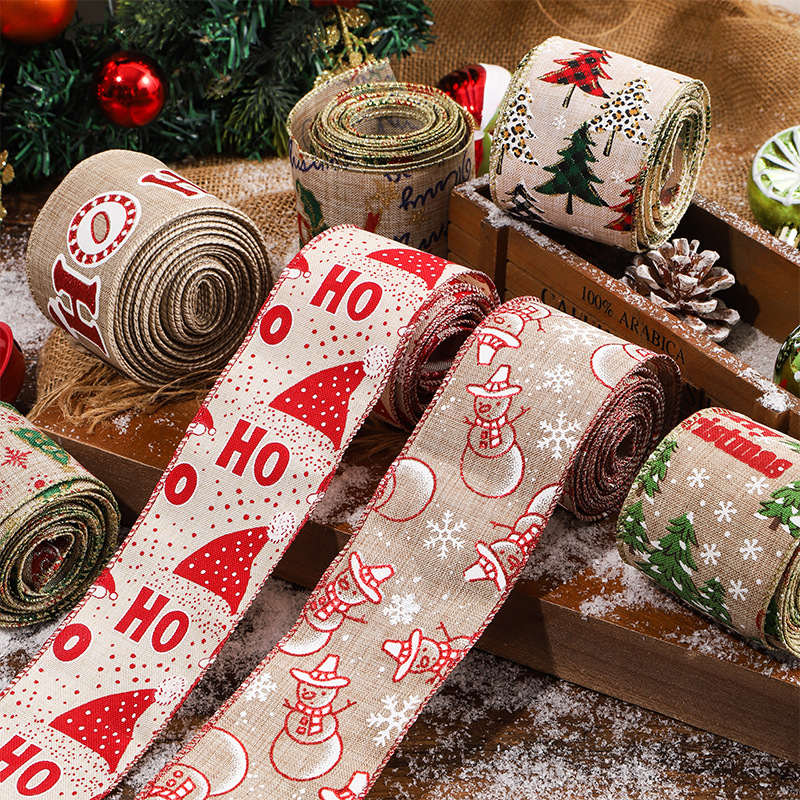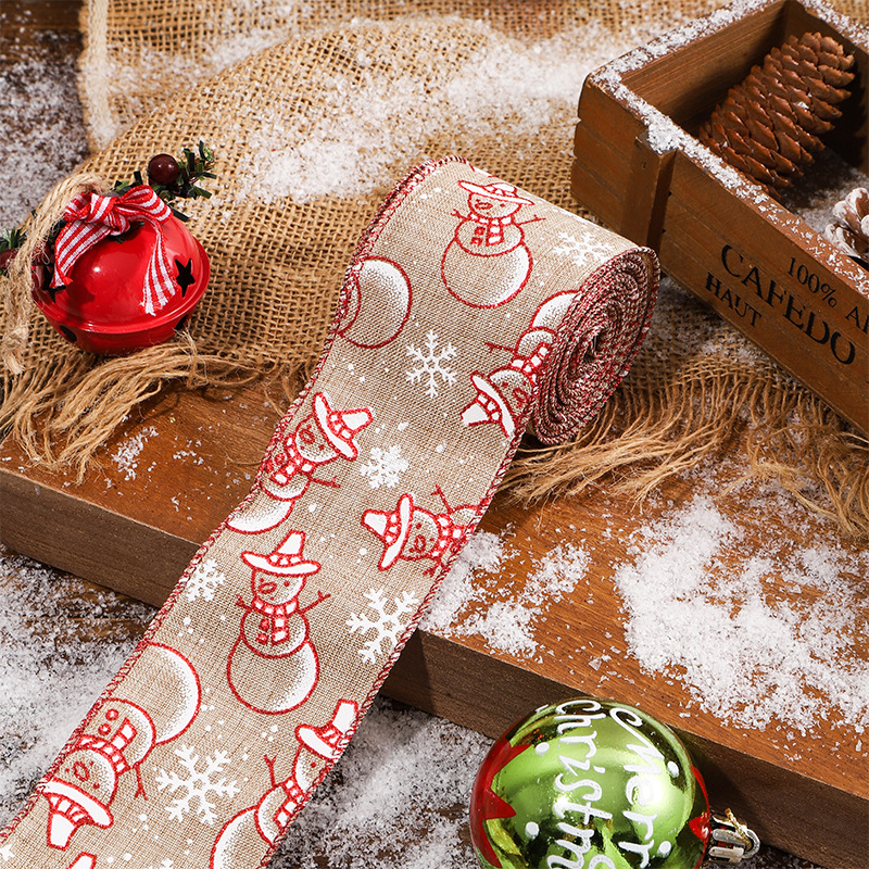 圣诞织带红白色仿麻布丝带蝴蝶结辅料圣诞节彩带印花缎带麻布礼品