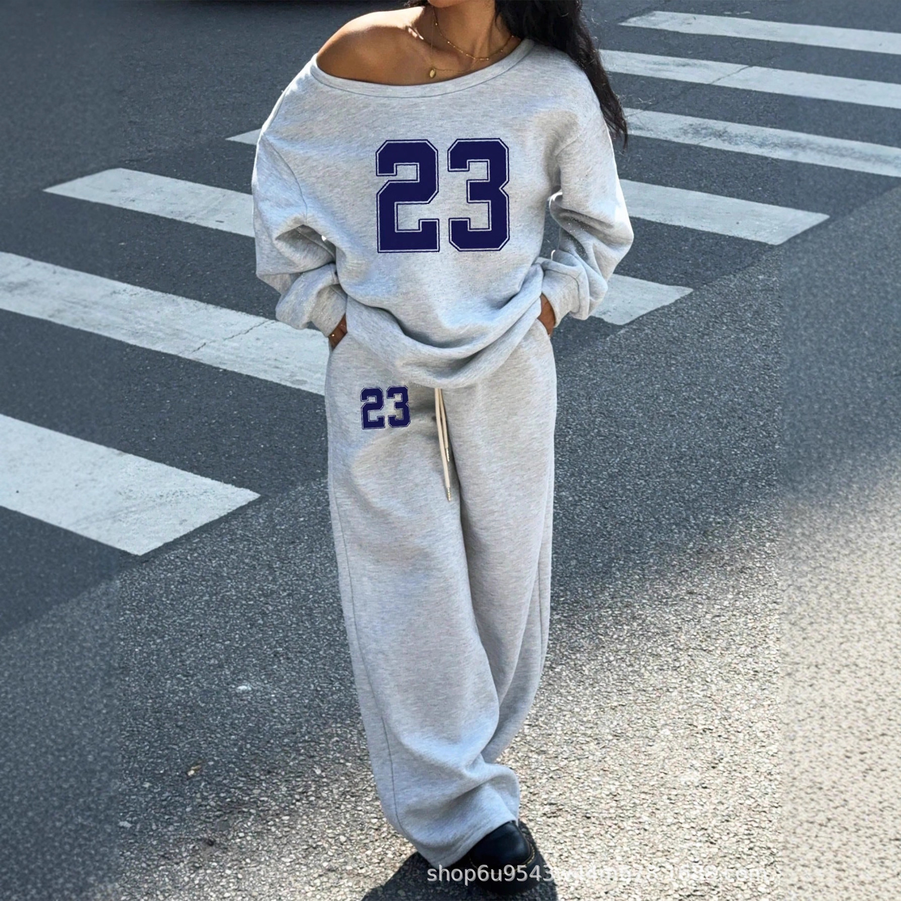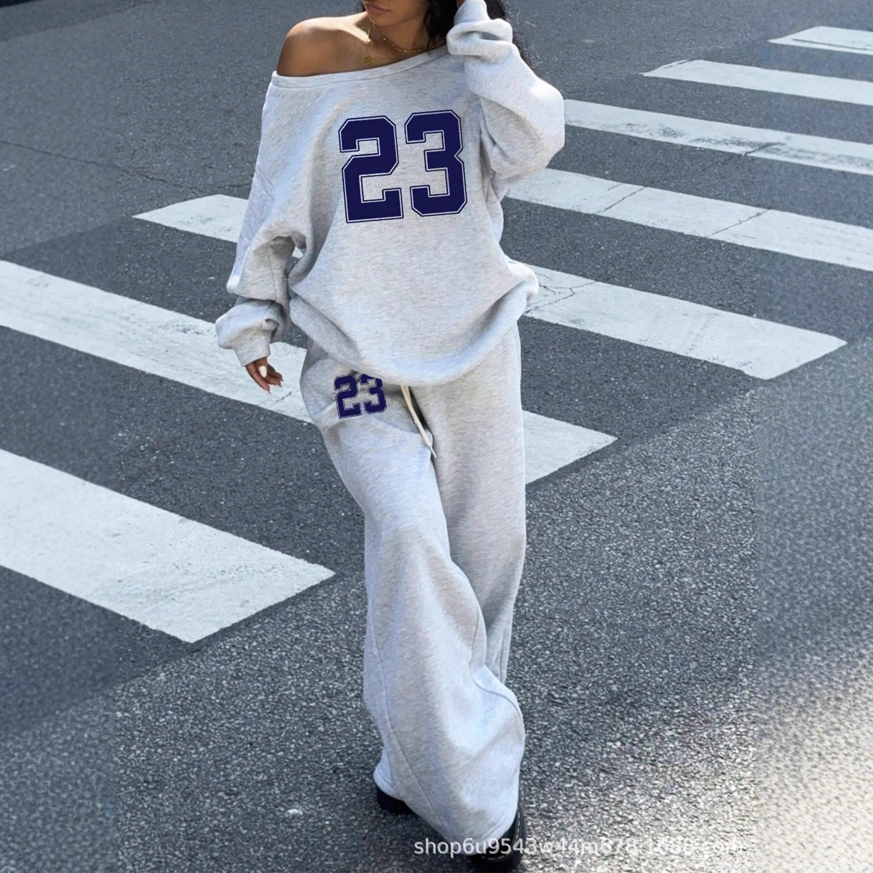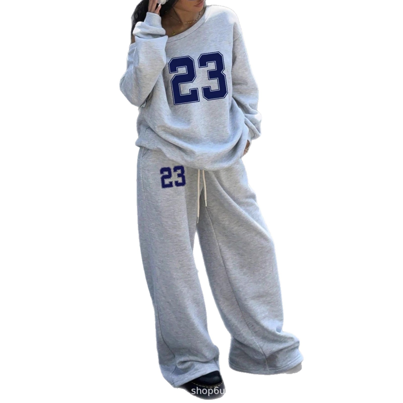 欧美跨境数字图案印花休闲时尚潮流运动两件套