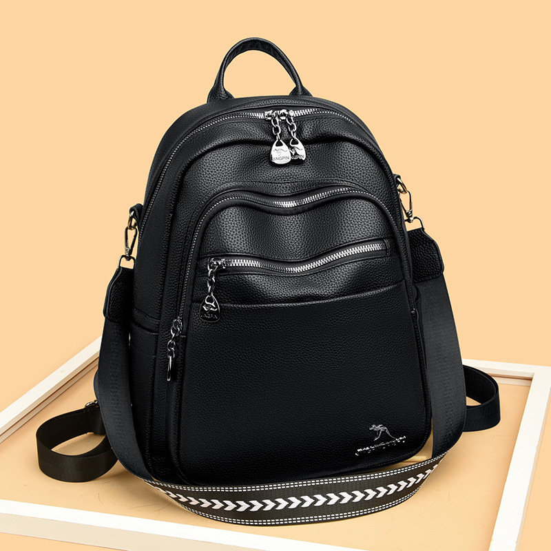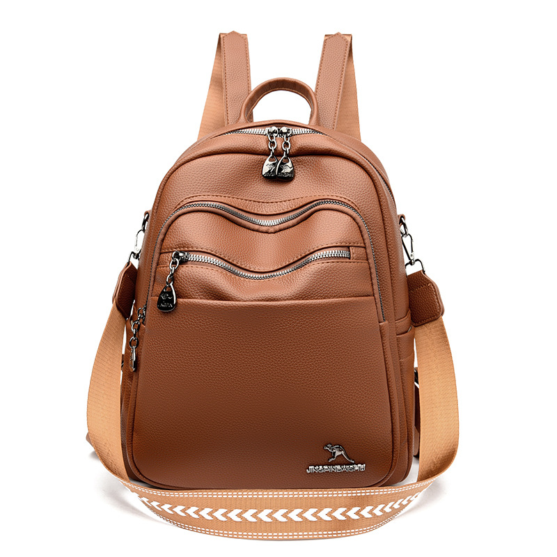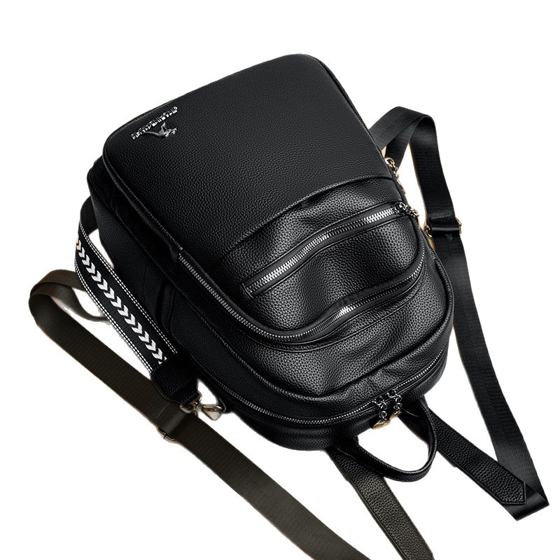 真皮质感双肩包2025女士新款时尚百搭大容量外出旅行防盗妈妈背包
