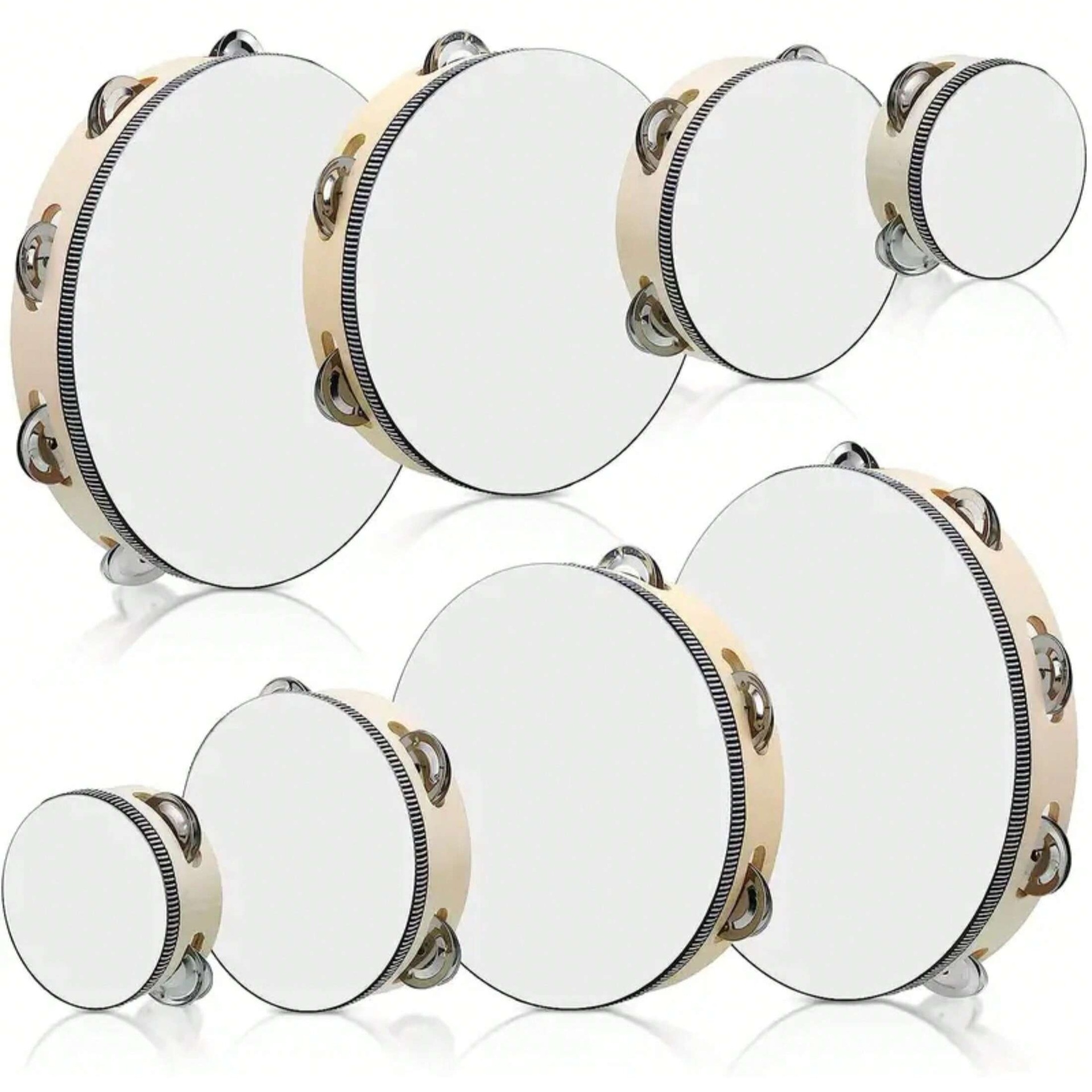 奥尔夫打击乐器6寸8寸10寸儿童双排铃鼓早教乐器原木色仿羊皮铃鼓